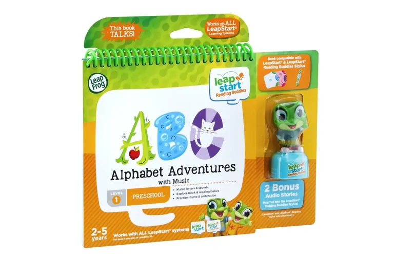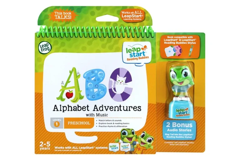 In the Alphabet Adventures with Music LeapStart book, Join Leap, Tad and Lily and explore 14 key alphabet and music skills, including identifying uppercase and lowercase letters, understanding letter sounds, recognising words with the same beginning sound and more. LeapStart Stylus sold separately.