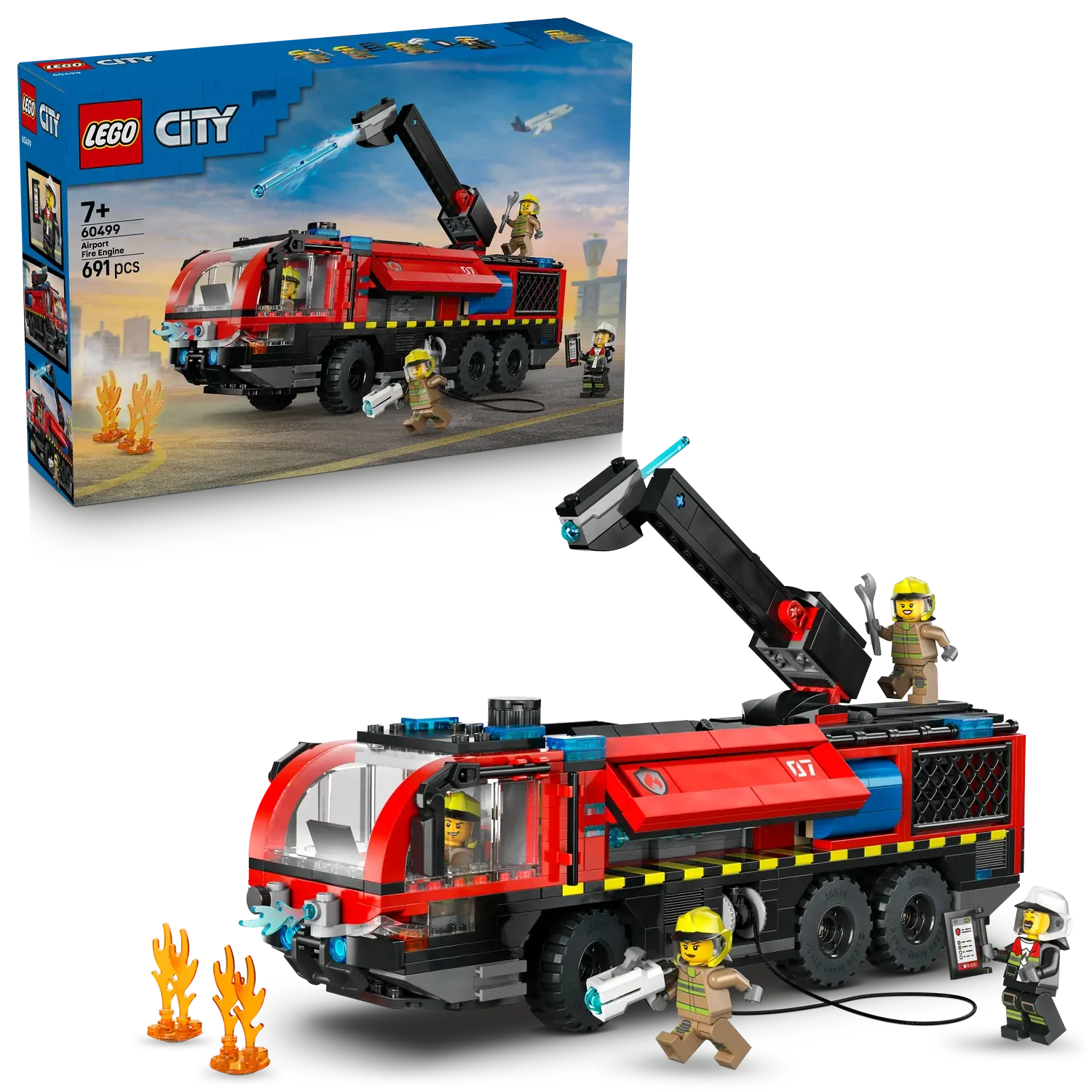 - FIRE ENGINE TOY FOR AGES 7+ – Treat your young hero to the LEGO® City Airport Fire Engine (60499), packed with authentic features and 4 firefighter minifigures for thrilling rescue role-play adventures