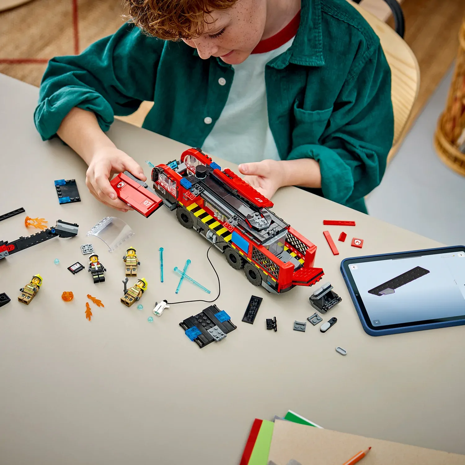 - MINIFIGURE ACCESSORIES – This firefighter toy playset comes with LEGO® accessories including fire helmets, a wrench and a toy digital pad