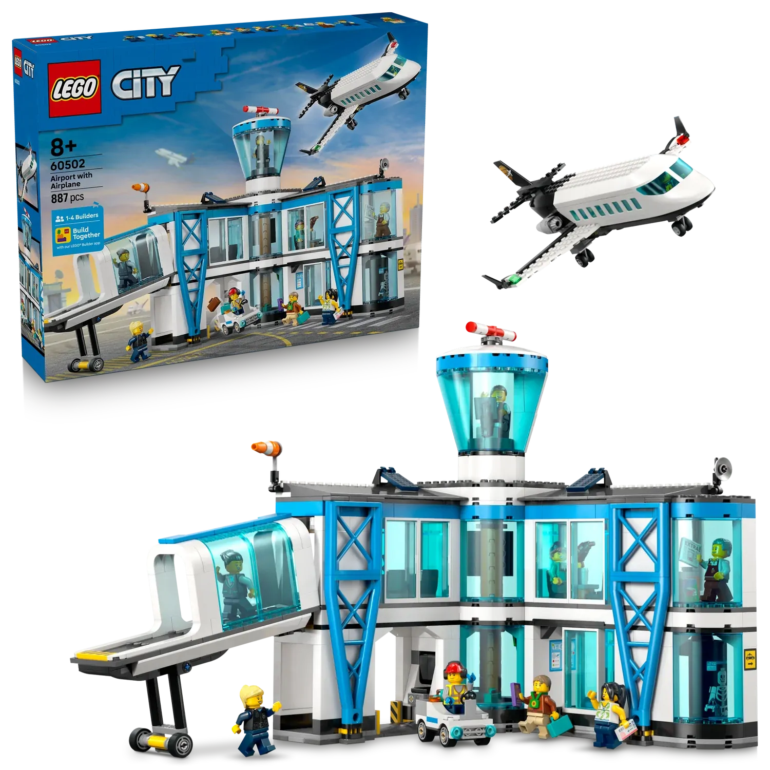 - MODEL AIRPORT – Kids’ play will take flight with this Build Together LEGO® City Airport with Airplane playset (60502) for ages 8+, including an airport terminal, passenger airplane and 9 minifigures