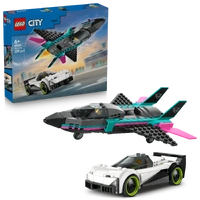 Make any day special with this jet and car building kit – a great gift for 6-year-old boys, girls and kids who love race car toys and model aircraft. Add this set to others (sold separately) from the LEGO City range for citywide action.