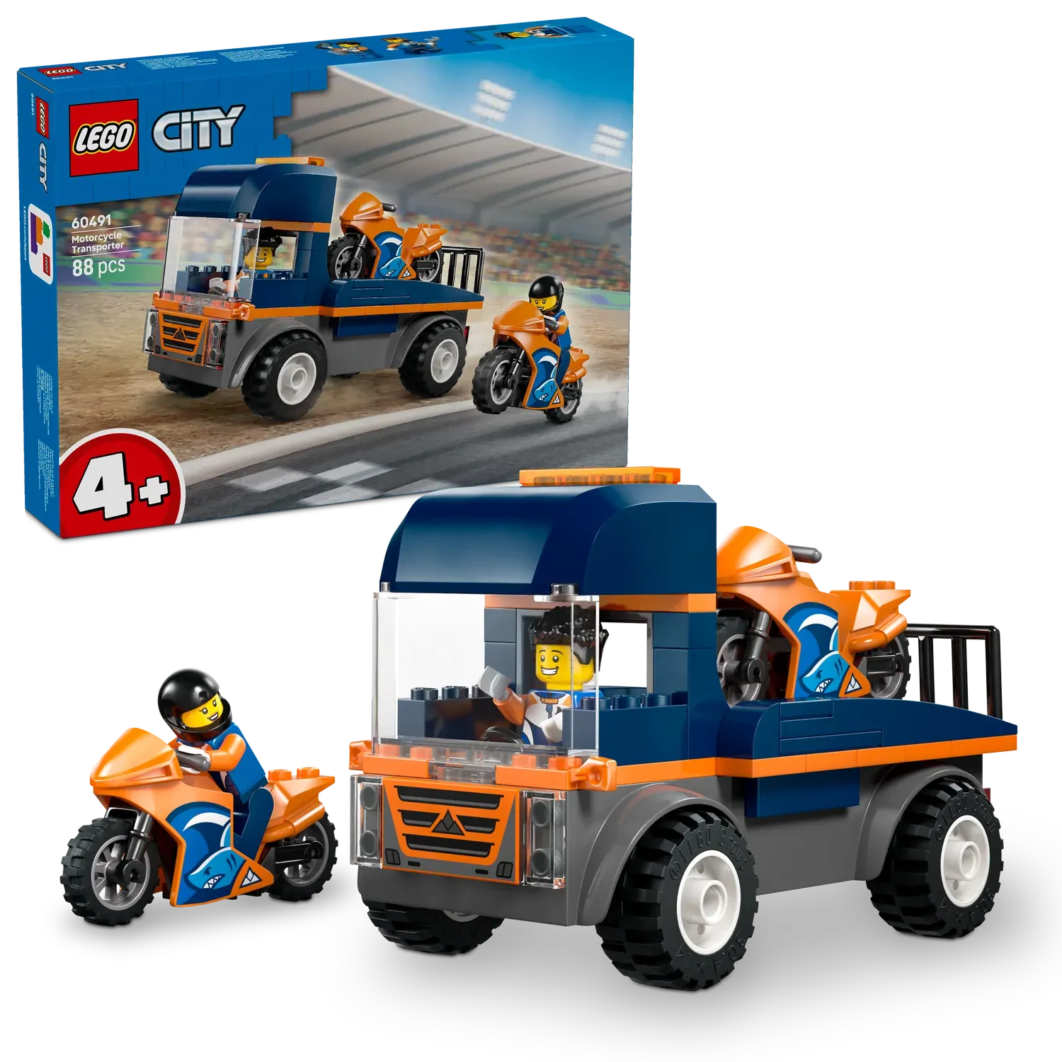 - TOY VEHICLE SET FOR AGES 4+ – The LEGO® City Motorcycle Transporter (60491) is a fun introductory playset for kids aged 4 and over who love model trucks and racing toys