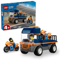 Introduce kids aged 4+ to a world of imaginative play with the LEGO® City Motorcycle Transporter (60491) toy building kit. This toy vehicle playset includes a flatbed truck toy with chunky rubber tyres, 2 sporty motorcycle toys and 2 racer minifigures with helmets. Kids can load and unload the bikes using the ramp, play out epic motorcycle race action and seat a minifigure in the cab for fun on-the-road adventures.