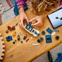 - JAILBREAK ESCAPES – Kids can put the police driver minifigure in the toy van, lock crooks in the onboard cell and use the model motorcycle hook to pull off the cell door for epic escape action