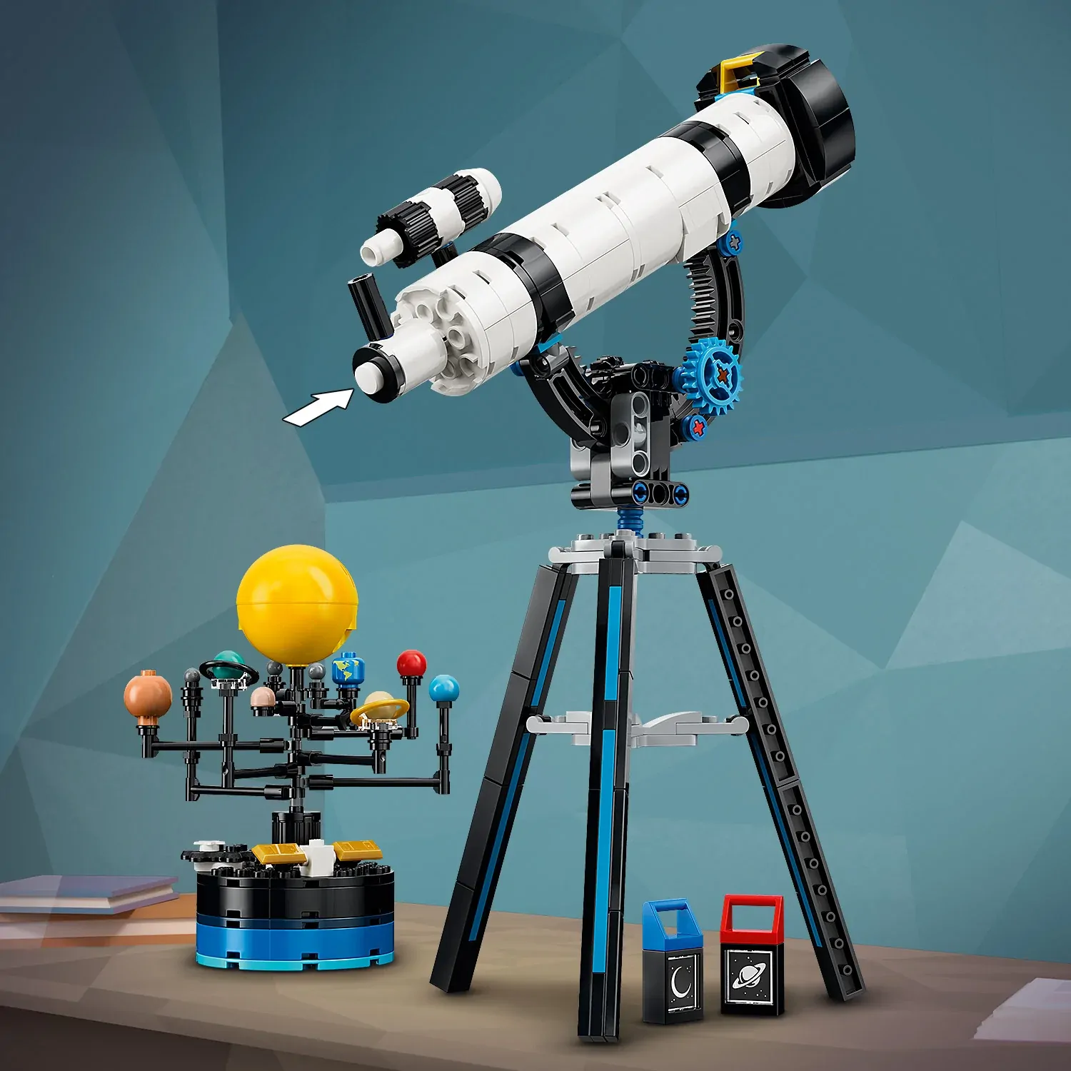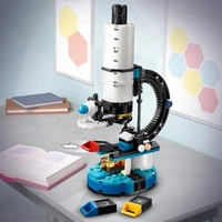 - 3 LENSES TO PROJECT AND VIEW – LEGO® space playset has 3 interchangeable decorated lenses, a planet, a star and the Moon, to project from the telescope on to a surface or view inside the microscope