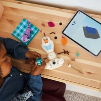 - DISNEY’S FROZEN BUILDING KIT ACCESSORIES – Tell fun stories with a cup of hot chocolate, a snowflake, removable decorative leaves for the blanket and a stick with a marshmallow