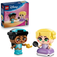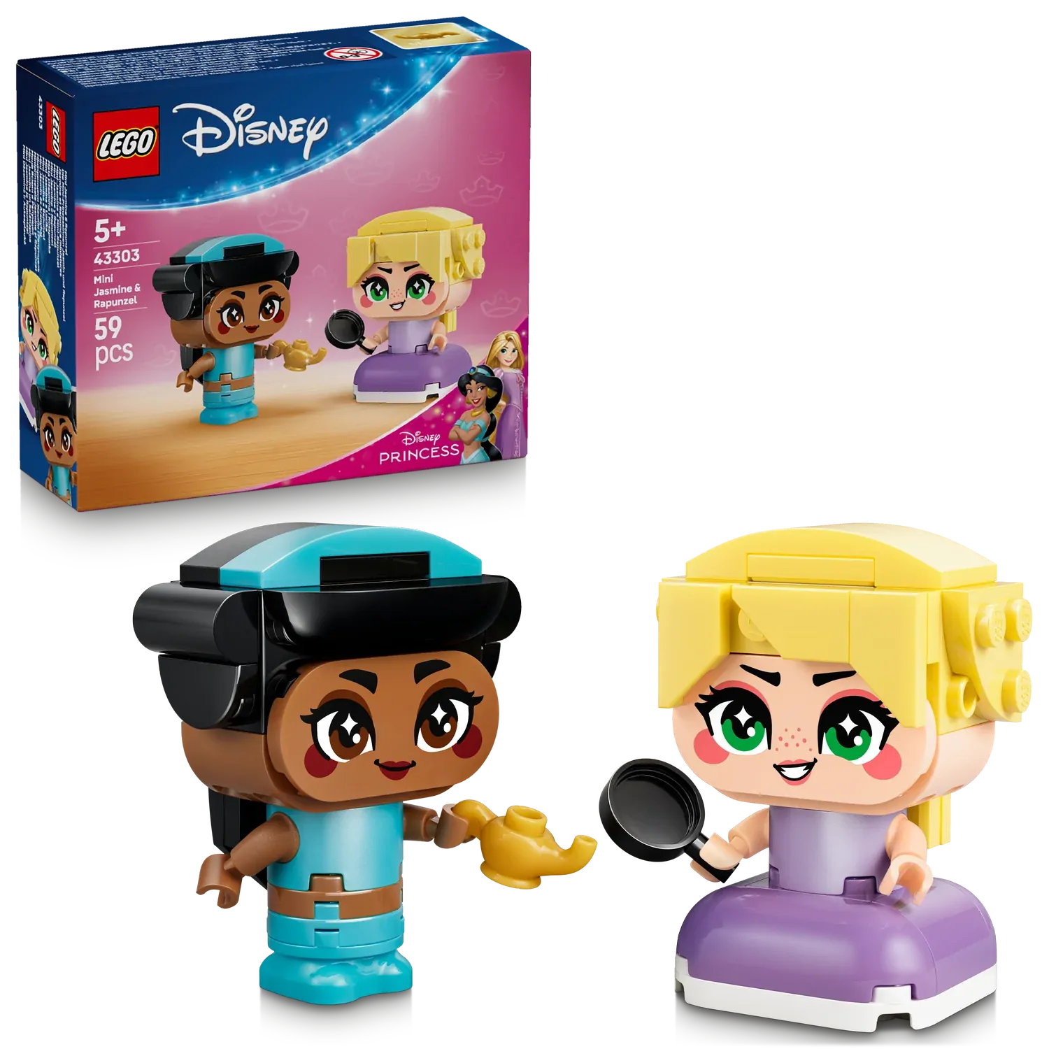 - JASMINE AND RAPUNZEL DISNEY CHARACTERS – This Mini Jasmine & Rapunzel (43303) princess toy building set has 2 LEGO® ǀ Disney Princess fantasy movie characters as part of a collectable series