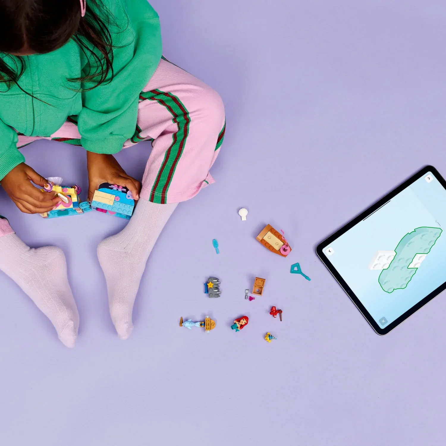 - LEGO® ǀ DISNEY CHARACTERS AND ACCESSORIES – Play out favourite movie scenes or new stories with Disney Princess Ariel, Flounder and Sebastian, a treasure chest with fork and a crystal, and more