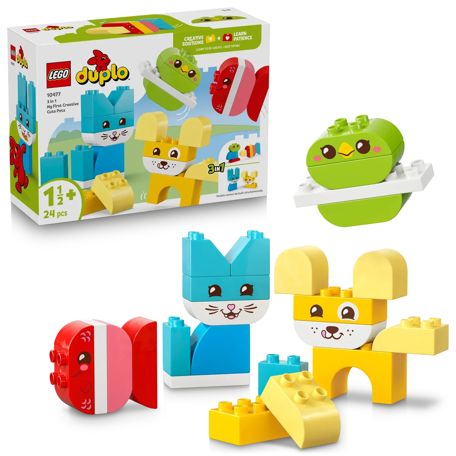 - Learning toy for toddlers – Fill playtimes with colour and creativity with the 3 in 1 Creative Cute Pets (10477) set, where little builders can learn colours as they make a range of LEGO® DUPLO® animals toys
