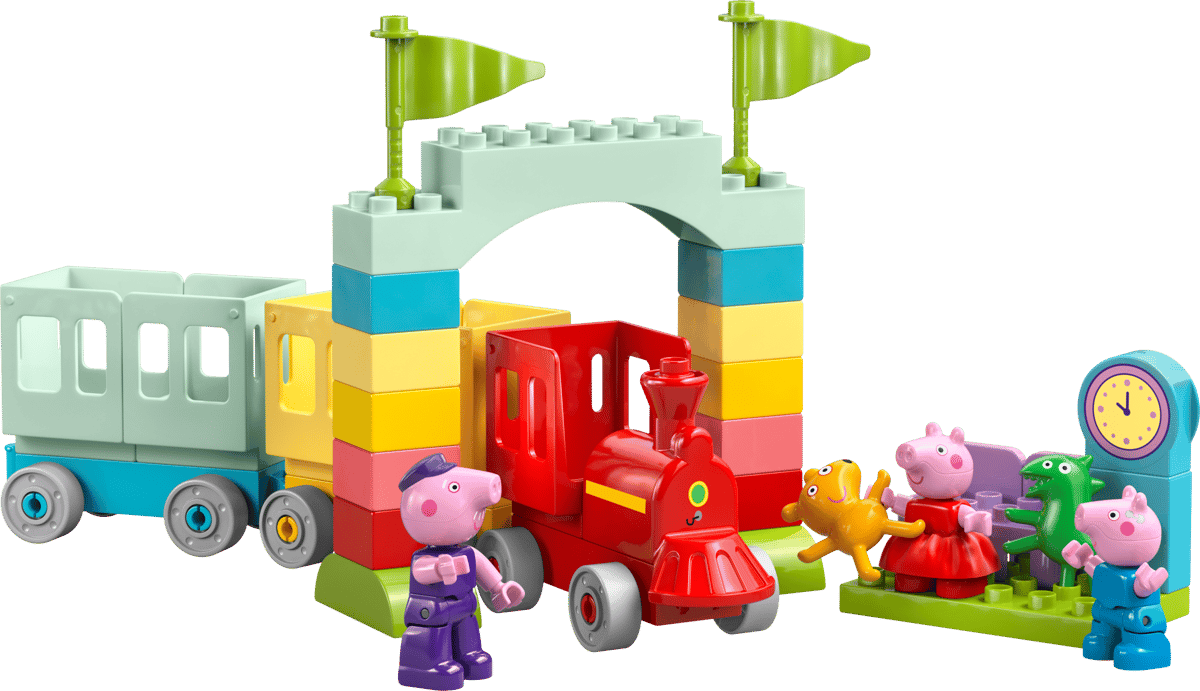 - FEATURES FOR CREATIVE TRAIN PLAY – Includes Grandpa Pig, George Pig and Peppa Pig figures, a drivable toy train plus carriages, an arch made from bricks and a LEGO® DUPLO® station with a clock
