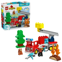 The LEGO DUPLO fire engine model is packed with fun features to spark creative rescue stories. It has a hinged ladder and a transparent LEGO DUPLO brick water tank. Budding firefighters can pretend to attach the hose to the tank to put out the fire. Toddlers also develop fine motor skills, transforming the fire engine so that its trailer becomes articulated, making it easier to drive around corners. Set contains 28 pieces.