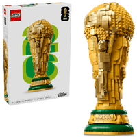 Become a creative champion with the LEGO® Editions FIFA World Cup™ Official Trophy (43020) building set for soccer fans ages 12 and up. Sports stars ages 12 and up will have lots of fun building this World Cup™ Trophy replica from LEGO bricks and discovering its authentic details. It features 2 human figures in a swirling movement holding up the Earth, the iconic globe and a plaque at the bottom naming past World Cup™ winners. The top globe of the LEGO trophy opens to reveal a FIFA World Cup 2026™ branded minifigure holding a mini trophy toy and a backdrop that shows the 2026 World Cup™ logo. The small scene can be kept inside the trophy or taken out to be displayed next to it. Once complete, the trophy makes awesome soccer decor and is a great birthday or anytime gift idea for boys, girls and sports fans of all ages. It’s also available digitally in the LEGO Builder app, where kids can track their progress and rotate their builds. Set contains 2,842 pieces.