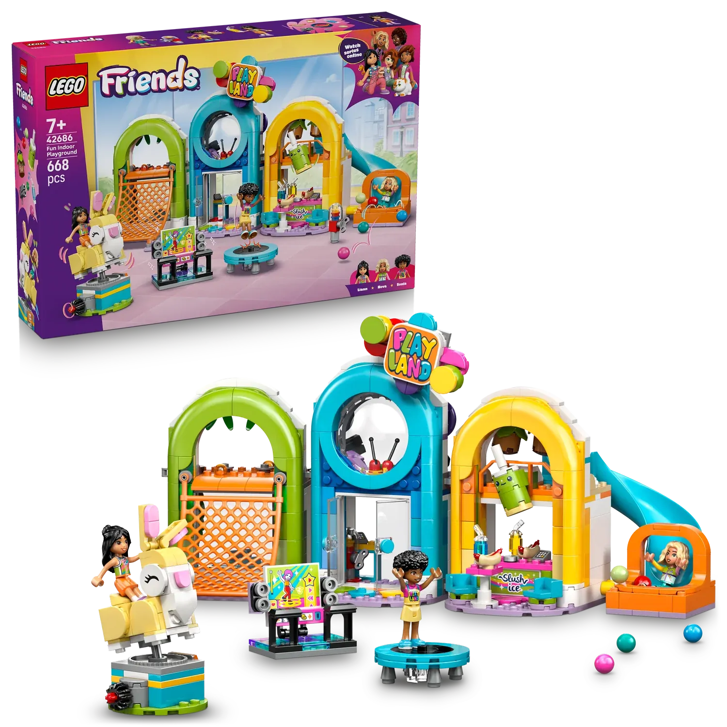 - BUILD AN INDOOR PLAYGROUND – Let kids’ imaginations roam wild as they explore this LEGO® Friends Fun Indoor Playground (42686) set for girls and boys aged 7 and over including 3 minidolls