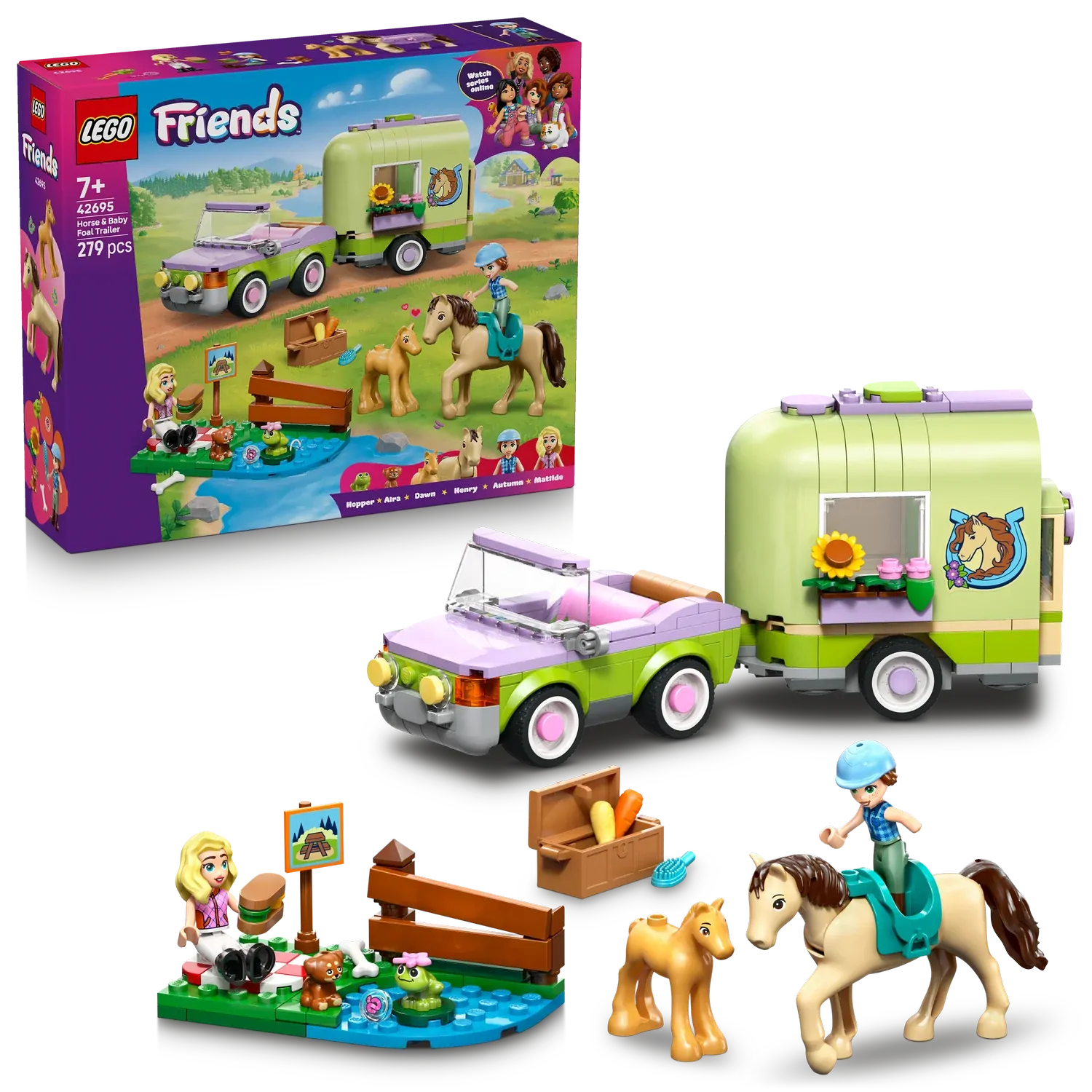 - 2 LEGO® FRIENDS CHARACTERS – This detailed LEGO Friends Horse & Baby Foal Trailer (42695) pretend-play set comes with Autumn and Matilde minidolls to inspire stories about their passion for horses