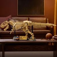 - T. rex fossil display for adults – Features a Tyrannosaurus rex fossil model with articulated joints, a stand, a plaque and hidden dig-site Easter eggs including an ‘amber’ piece and 2 minifigures