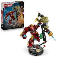 Iron Man battles Hulk, with the help of his Hulkbuster armour, amid a street scene filled with debris, collapsing steel structures and a traffic light, which Hulk can use as a weapon. The Hulkbuster is fully jointed to maximise posability. With a sturdy base and nameplate, kids can use their model as room decor or detach the minifigures to create Super Hero adventures of their own. This set makes a great gift idea and, with the LEGO Builder app, kids can build with confidence – zoom, rotate in 3D and track progress with easy-to-follow digital instructions. Building set contains 413 pieces.