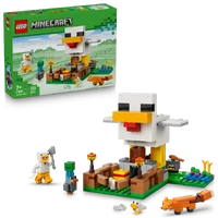 - MINECRAFT® FARM CHARACTERS – The LEGO® Minecraft Chicken Farm (21585) set includes a Chicken Fan minifigure, plus a baby zombie (who likes to ride the chicken), fox, cold chicken and a baby chicken