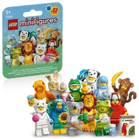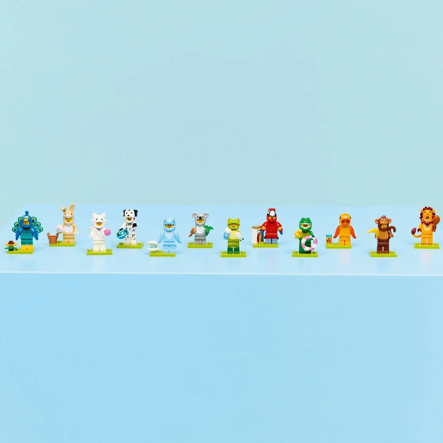 Girls and boys aged 5 and over can play out fun stories with 1 of 12 collectable figures from the LEGO® Minifigures Animal Series 28 (71051) small animal toy mystery boxes. There is 1 surprise LEGO minifigure in each box and a total of 12 characters to collect, including toy figures wearing parrot, lion, frog, crocodile, Dalmatian, goldfish, cute bunny, peacock, fluffy cat, koala, dolphin and monkey costumes. Each of the 12 minifigures comes in a sealed mystery box, and all are accompanied by at least 1 accessory.