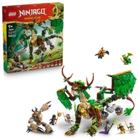 The playset includes a side build with a tree and a plant kids can spin round that hides a golden sword accessory, plus a posable mini mech toy with a cockpit for a minifigure. To role-play epic battles, there are 8 minifigures: ninja Zane, Sora, Arin, dragon form Lloyd and dragon form Cole and the villainous trio of Acid Monster, Earth Monster and Loyalist Leader.
