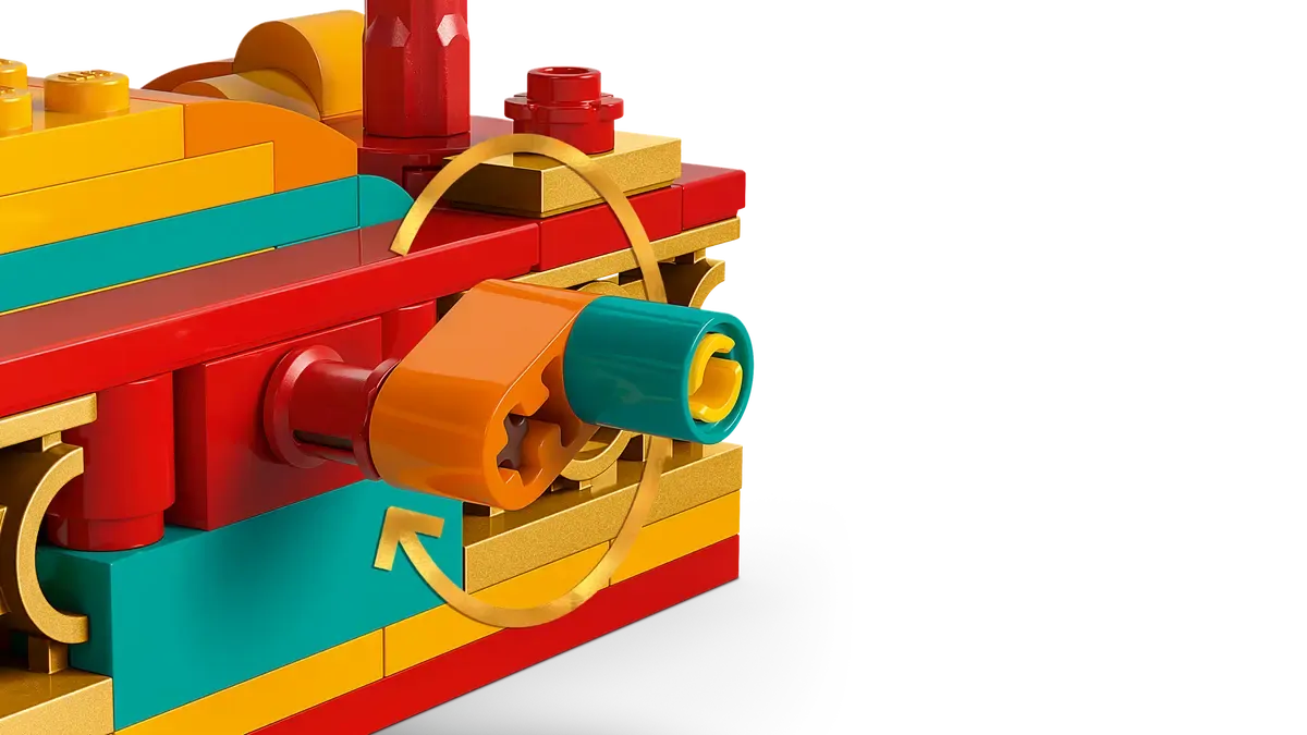 Hang the canvas with a printed brush painting of 4 galloping horses – which symbolises the traditional blessing of ‘success upon arrival’ in the New Year – as a backdrop to your model. Pose the legs of the 4 brick-built horse toys and turn the handle to make the horses move as if galloping out of the painting. Horses are a symbol of strength and the total number of 8 depicted in the painting/model symbolises good fortune.