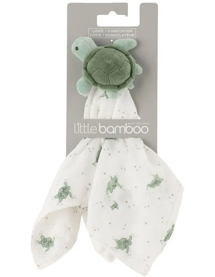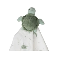 Little Bamboo presents the Terry the Turtle baby bamboo security blanket, which combines a luxurious bamboo viscose/cotton muslin blend for the blankie body with an adorable plush character head, creating a comforting toy. Whether you refer to it as a security blanket, comforter toy, lovie, lovey, blankie, doudou, or even nunu, your little one is certain to cherish it.