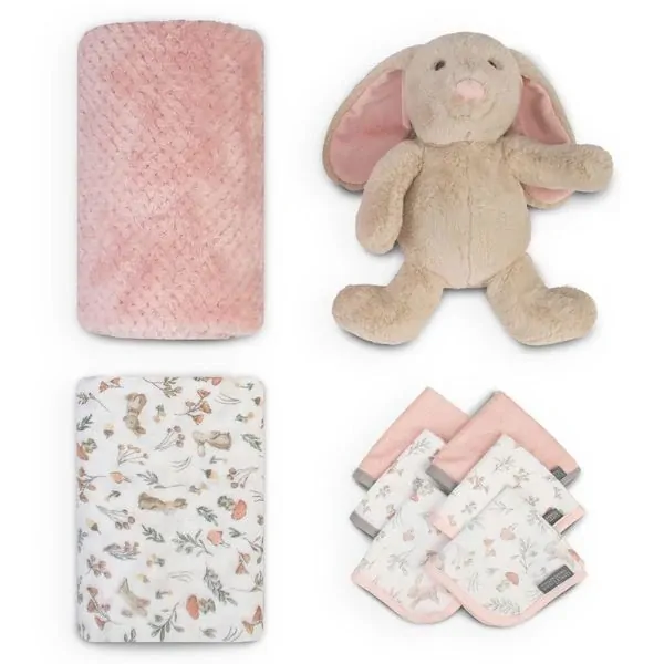 This Little Linen Boxed Gift Set combines key items to have on hand for any newborn bub. It consists a super-soft and functional fleece blanket, cuddly plush toy, soft towelling washers and a cotton muslin wrap perfect for your swaddling needs.