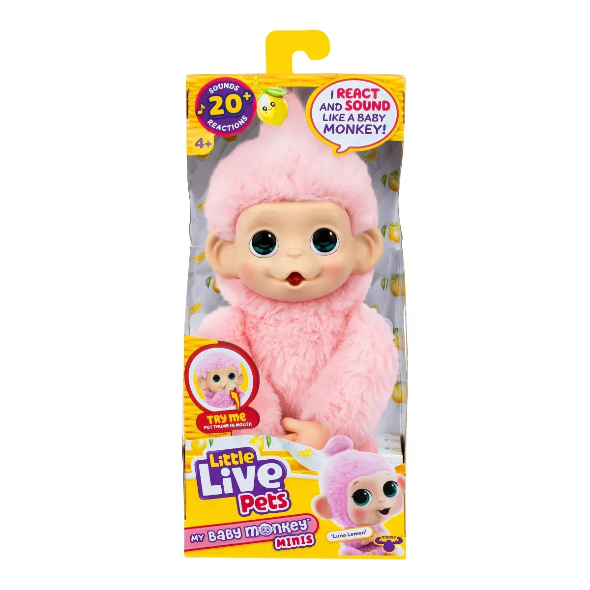 Meet Little Live Pets My Baby Monkey Minis. They're cute, cuddly, and adorable baby monkeys packed with personality! Each baby monkey has soft, realistic fur and its own unique character. Whether it's Luna Lemon, the pampered princess, Pepi Peach, the snack-loving cutie, or Chikki Cherry, the attention-seeking entertainer, there's a My Baby Monkey Mini for everyone.
