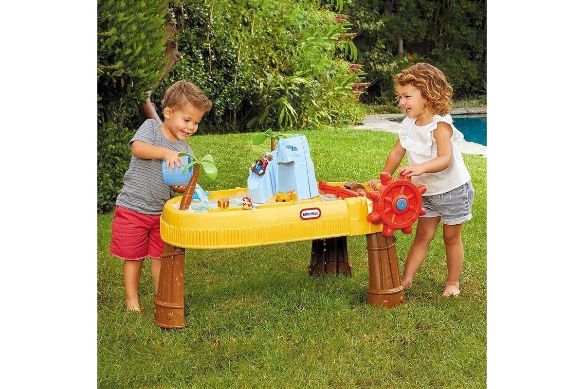 Arrr you ready to make waves? The Little Tikes Island Wavemaker is the only water table that lets kids create the waves inside their water table with the easy-to use wavemaker wheel.