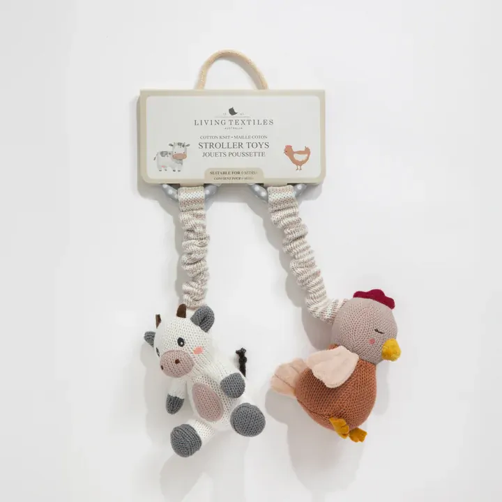 Keep baby entertained when out and about with our sweet cow and chicken stroller toy.