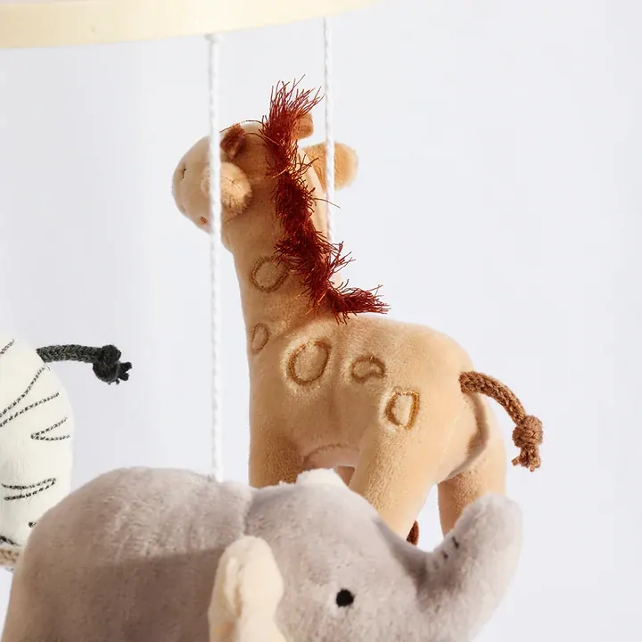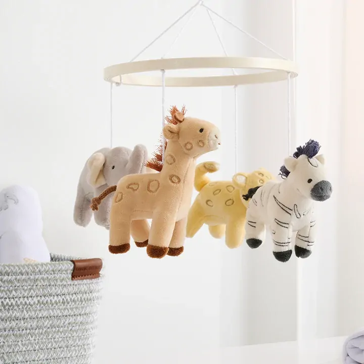 Little ones will love watching the adorable safari scene gently rotating overhead to the soothing tune of Brahms’ Lullaby. With exquisite detailing, this charming musical cot mobile adds the perfect finishing touch to your nursery, helping your baby drift off to sleep in a dreamy whimsical world.