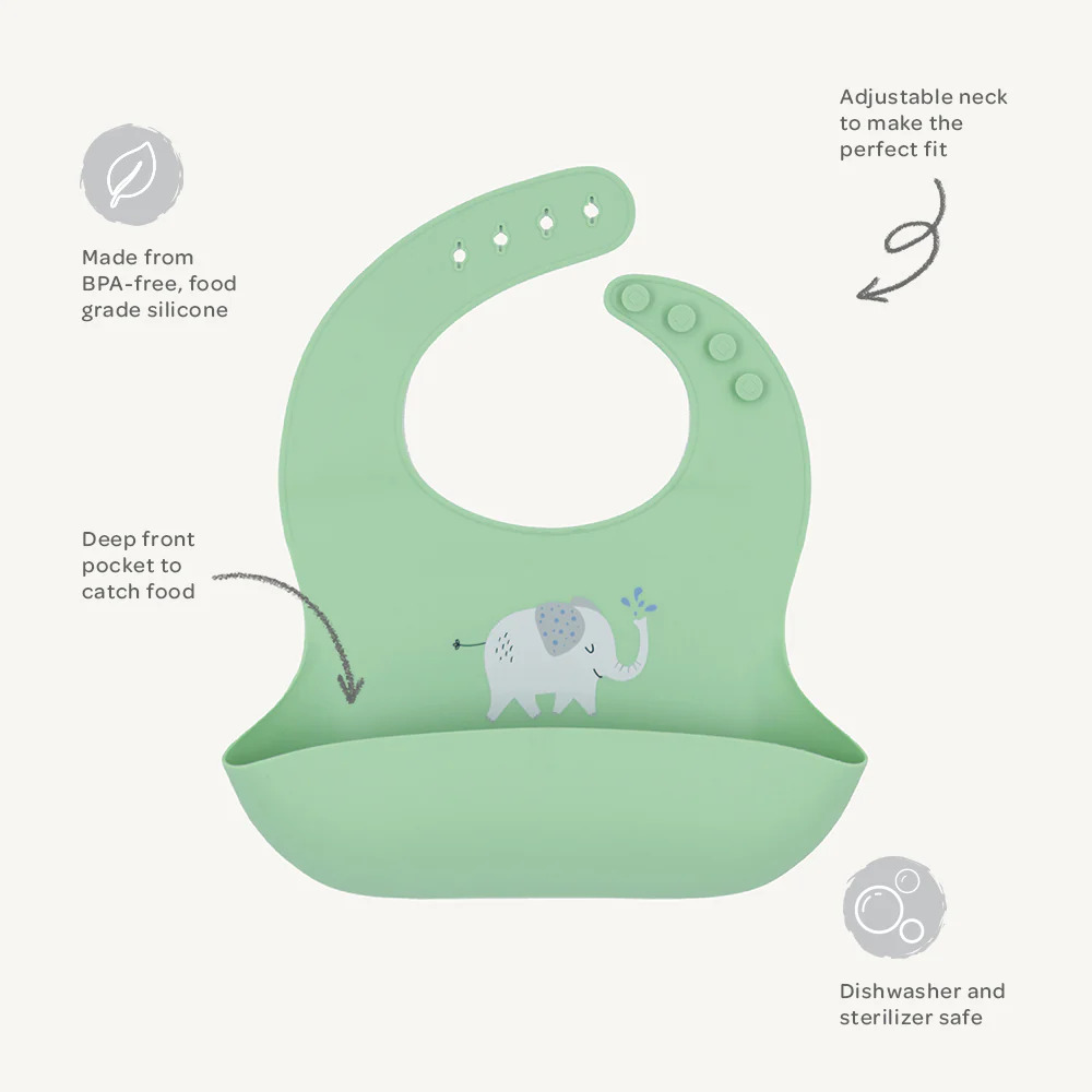 Made from BPA-free, food-grade silicone, this bib is perfect for keeping your little one clean at meal times. Light-weight, soft and durable it has an adjustable neck for the perfect fit. The deep front pocket is perfect for catching food that doesn't make your little one's mouth and is easy to wipe clean ready for their next meal.
