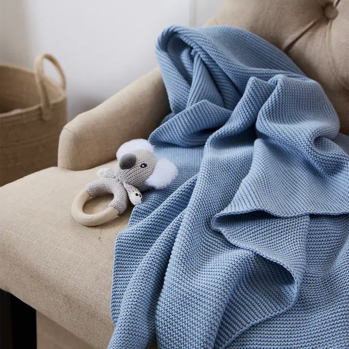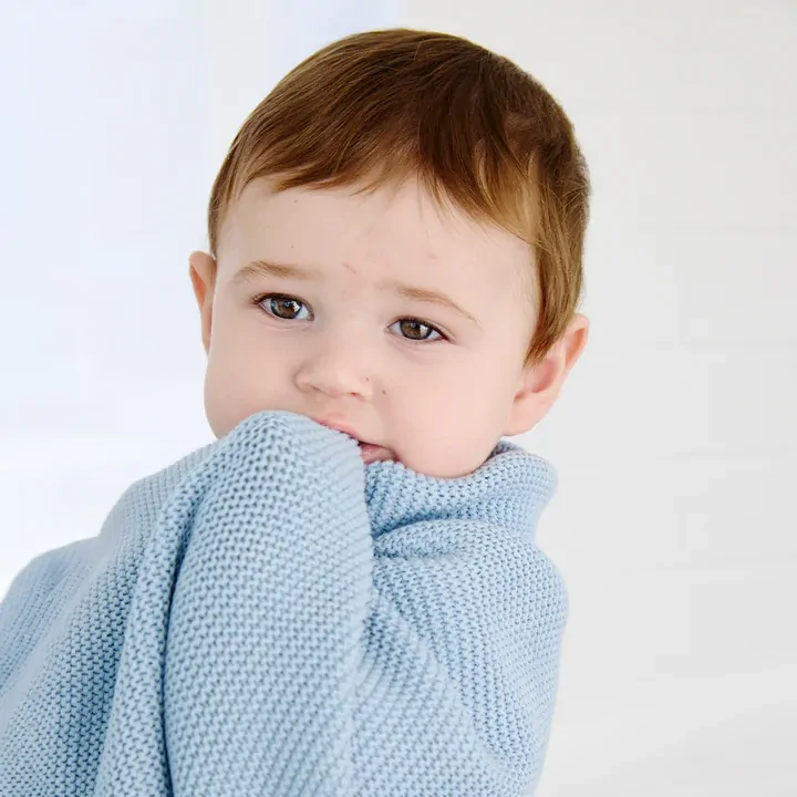 Keep baby warm and snuggly with our irresistibly soft 100% cotton knit pram blanket. Crafted from beautifully breathable cotton, this blanket feels gentle against delicate skin while allowing airflow to keep baby cozy without overheating. The soft knit texture adds warmth without weight, making it perfect for pram outings, bassinet naps and snuggles on the lounge.