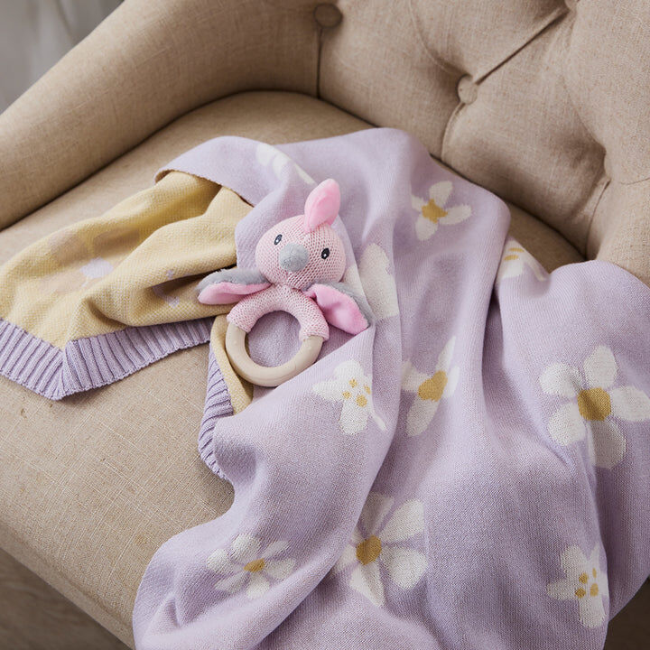 Keep baby warm and snuggly with our irresistibly soft 100% cotton knit pram blanket. Crafted from beautifully breathable cotton, this blanket feels gentle against delicate skin while allowing airflow to keep baby cozy without overheating. The soft knit texture adds warmth without weight, making it perfect for pram outings, bassinet naps and snuggles on the lounge.