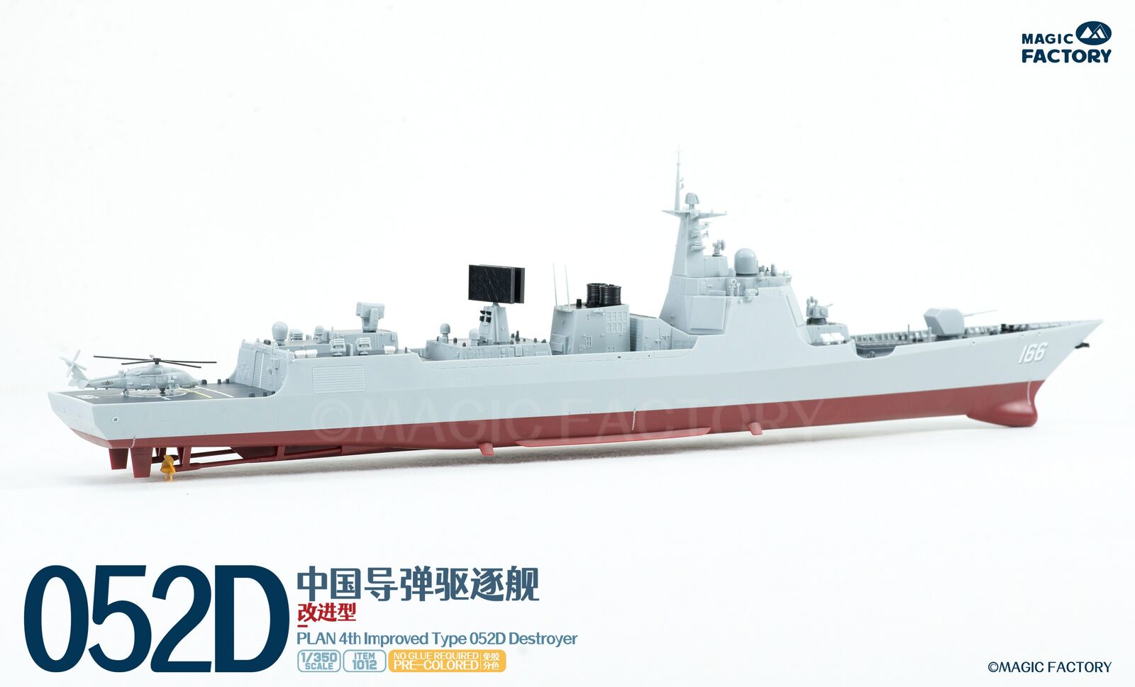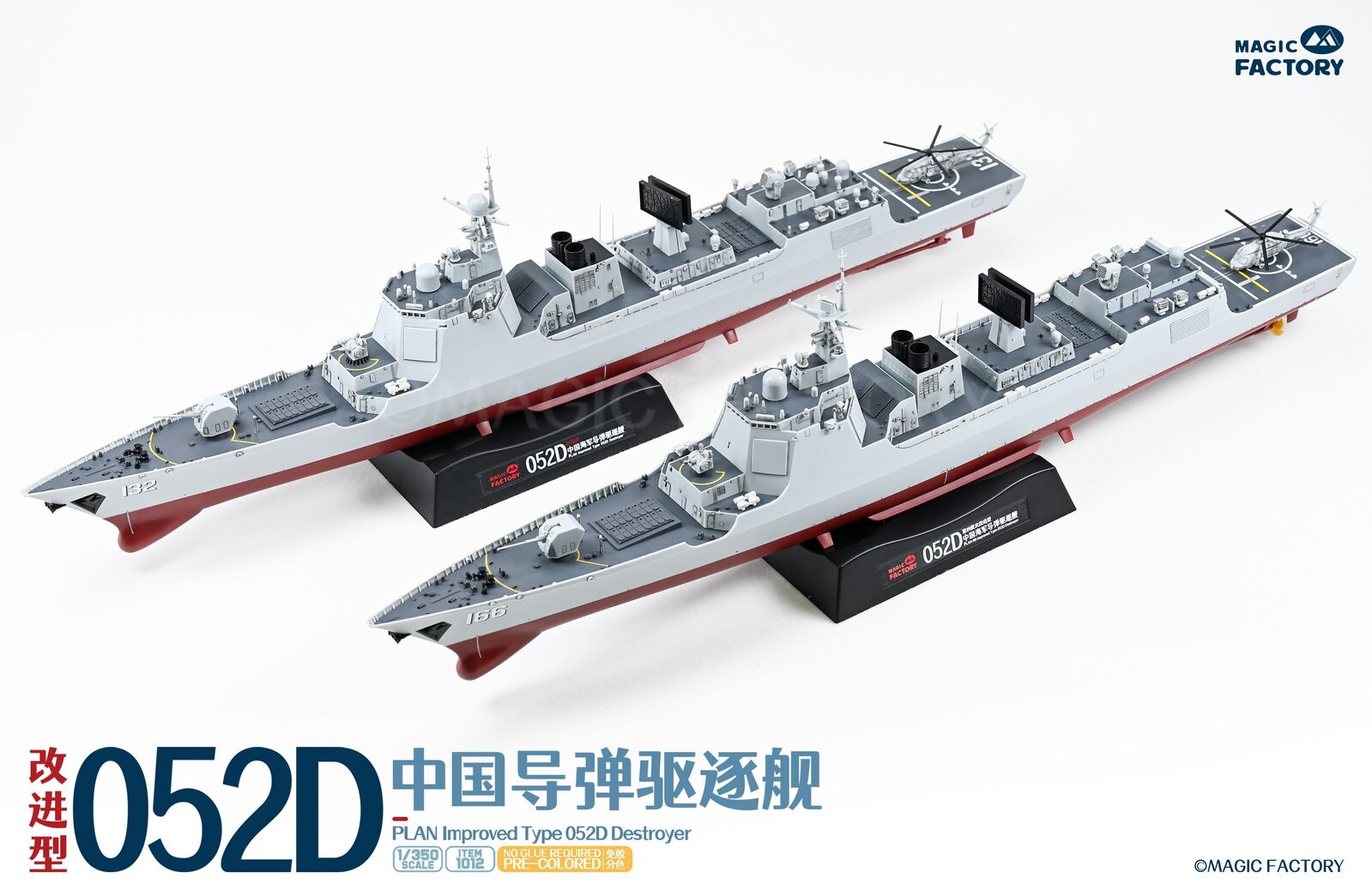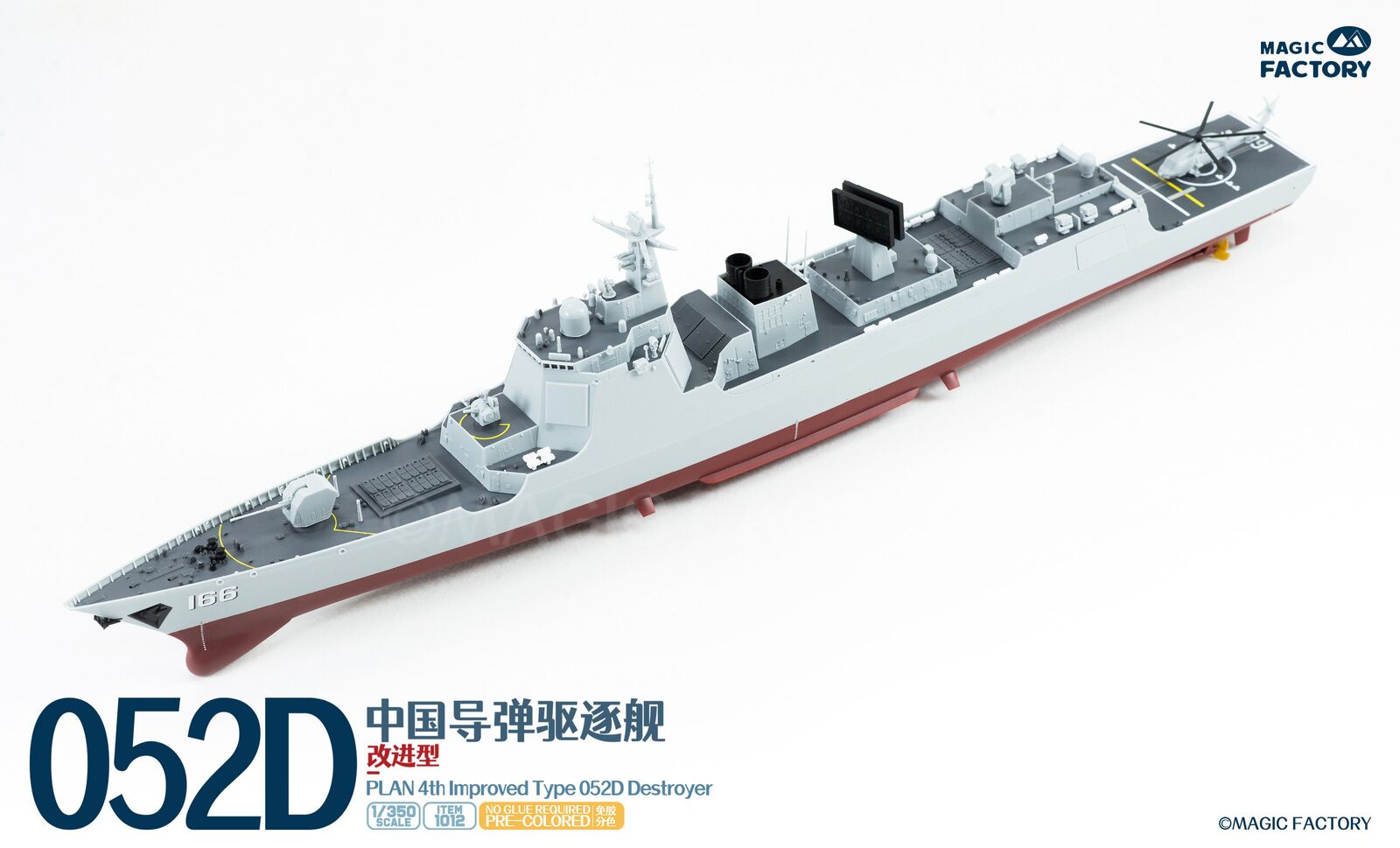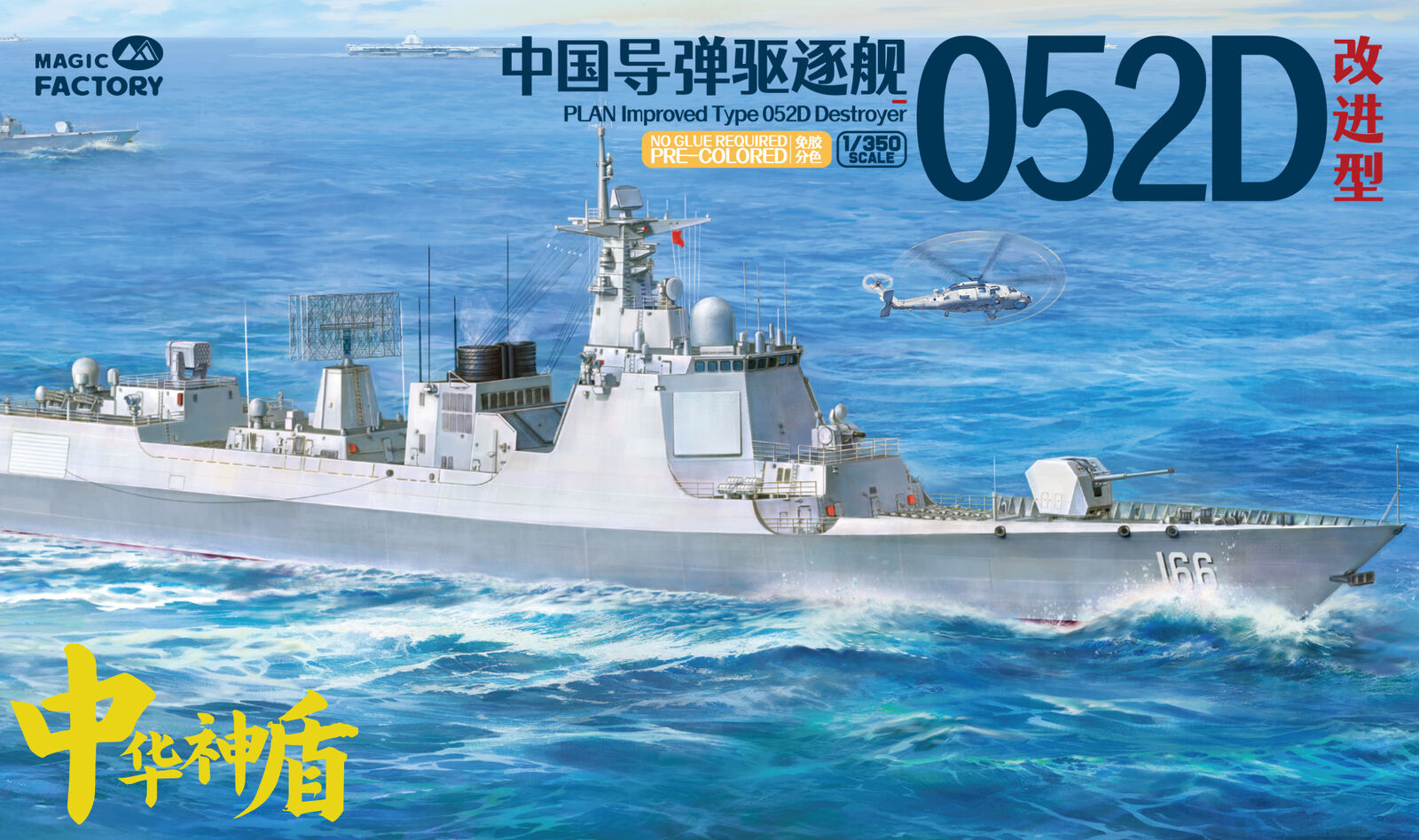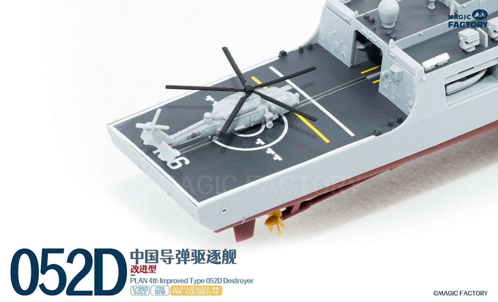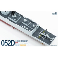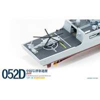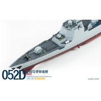 The Type 052D guided missile destroyers (Improved batch) are a new generation of Type 052D guided missile destroyers built by China. With a full load displacement of approximately 8,000 tons, their origins can be traced back to the first generation of the Type 052, built in the 1990s. After numerous improvements and upgrades, this batch features new radars, and adopts a next-generation data system to better enable systematic and networked operations. Furthermore, they are equipped with guns with enhanced stealth capabilities, and their appearance has been optimized to enhance their stealth performance. This represents another leap forward in the platform's stealth capabilities, electronic informationization, and network-centric warfare capabilities. The Type 052D series, equipped with a 130mm naval gun, a 1130-CIWS, a 64-cell universal vertical launch system, a 24-cell HQ-10 SAM launcher, four multi-purpose decoy launchers and 2 torpedo launcher.The 4th batch Type 052D equip a towed sonar release hatch at the stern, and space for a new Z-20F anti-submarine helicopter in the aft hangar.