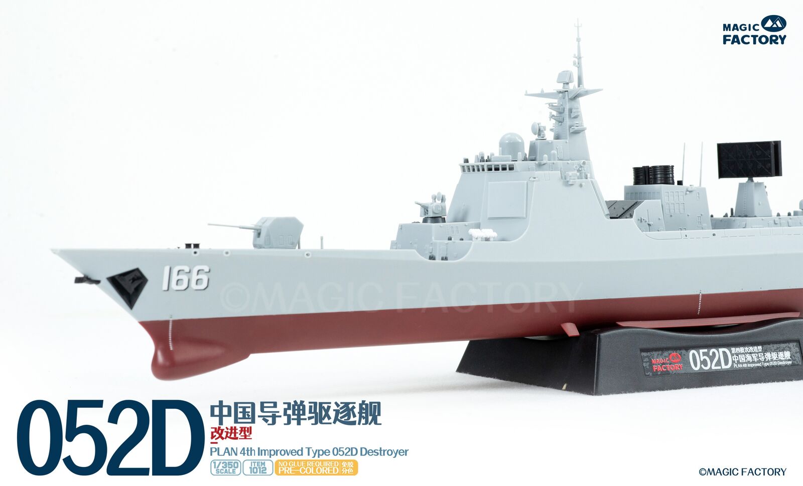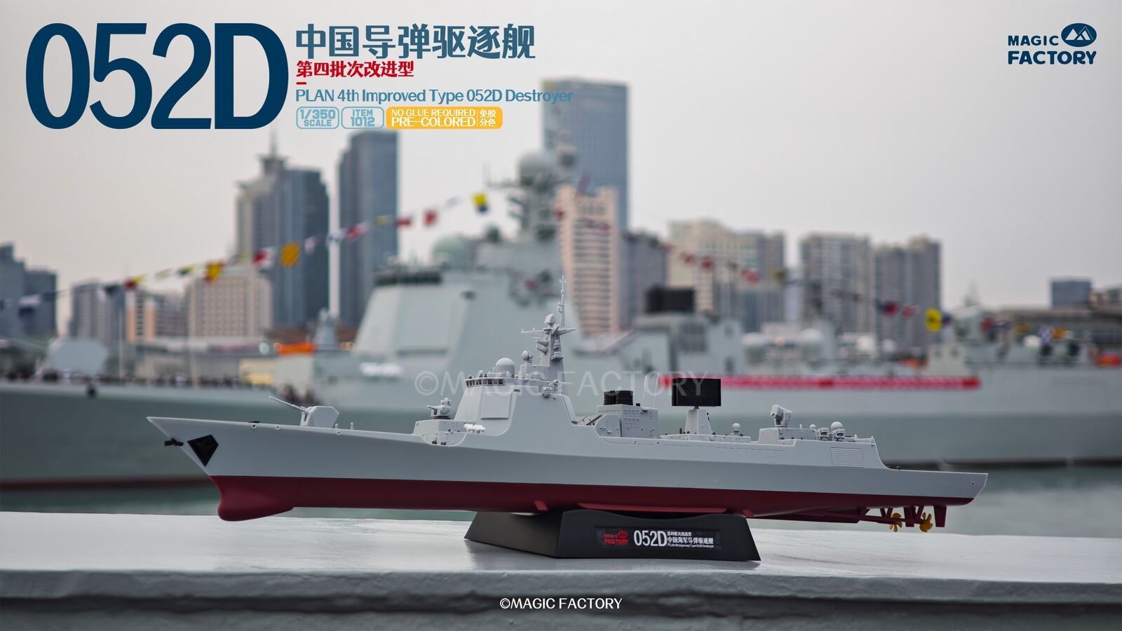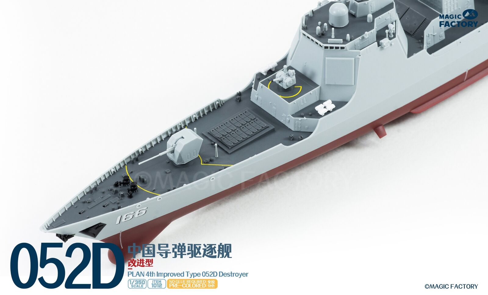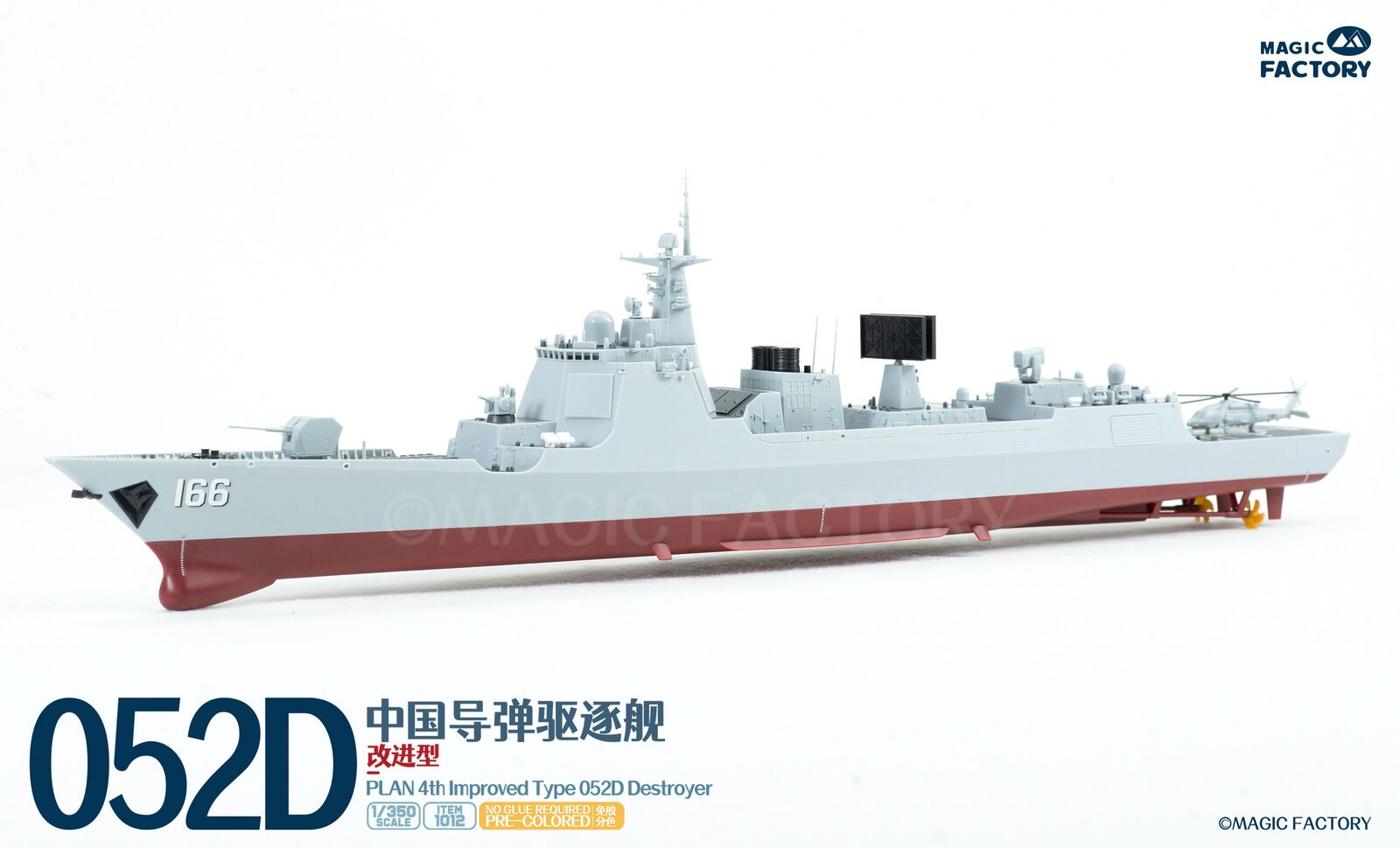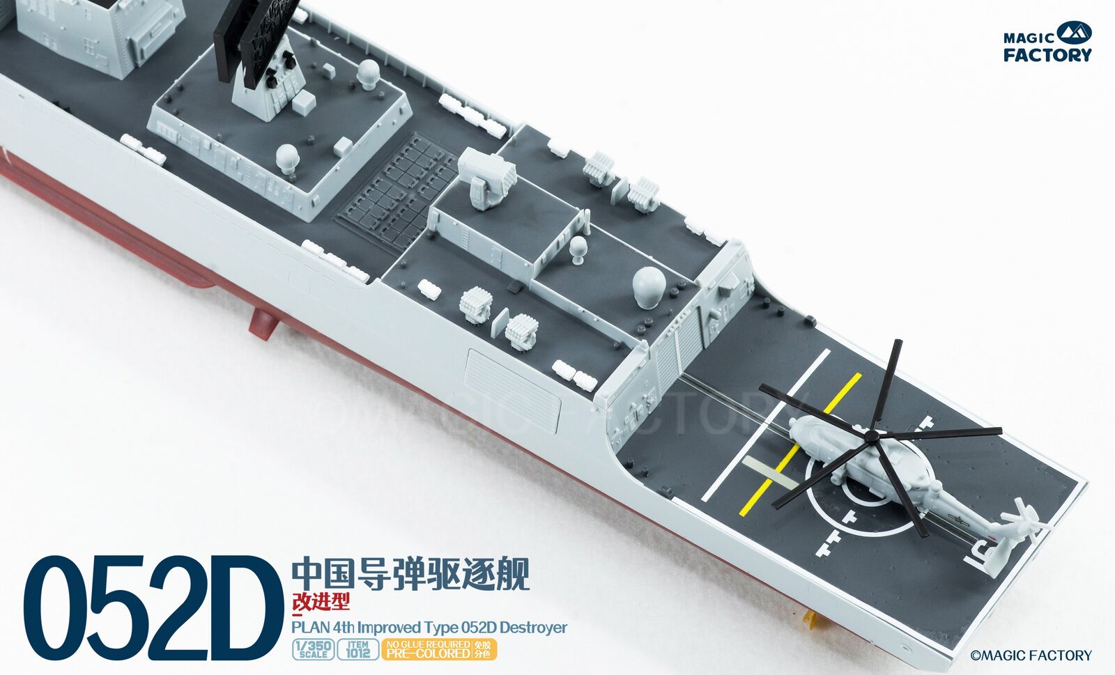 The Type 052D guided missile destroyers (Improved batch) are a new generation of Type 052D guided missile destroyers built by China. With a full load displacement of approximately 8,000 tons, their origins can be traced back to the first generation of the Type 052, built in the 1990s. After numerous improvements and upgrades, this batch features new radars, and adopts a next-generation data system to better enable systematic and networked operations. Furthermore, they are equipped with guns with enhanced stealth capabilities, and their appearance has been optimized to enhance their stealth performance. This represents another leap forward in the platform's stealth capabilities, electronic informationization, and network-centric warfare capabilities. The Type 052D series, equipped with a 130mm naval gun, a 1130-CIWS, a 64-cell universal vertical launch system, a 24-cell HQ-10 SAM launcher, four multi-purpose decoy launchers and 2 torpedo launcher.The 4th batch Type 052D equip a towed sonar release hatch at the stern, and space for a new Z-20F anti-submarine helicopter in the aft hangar.