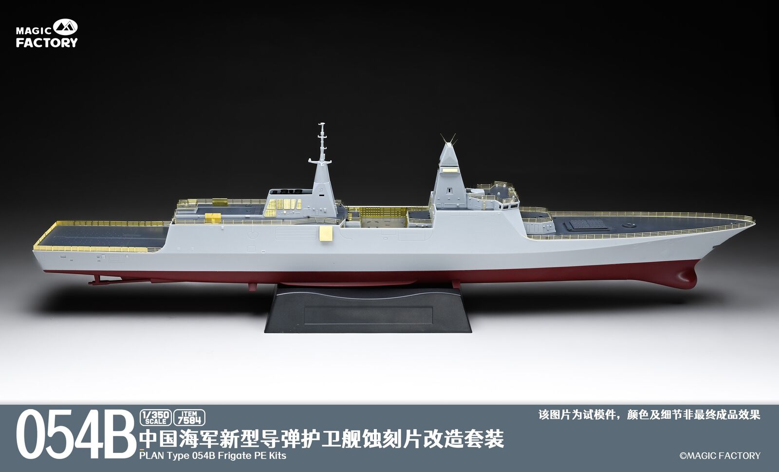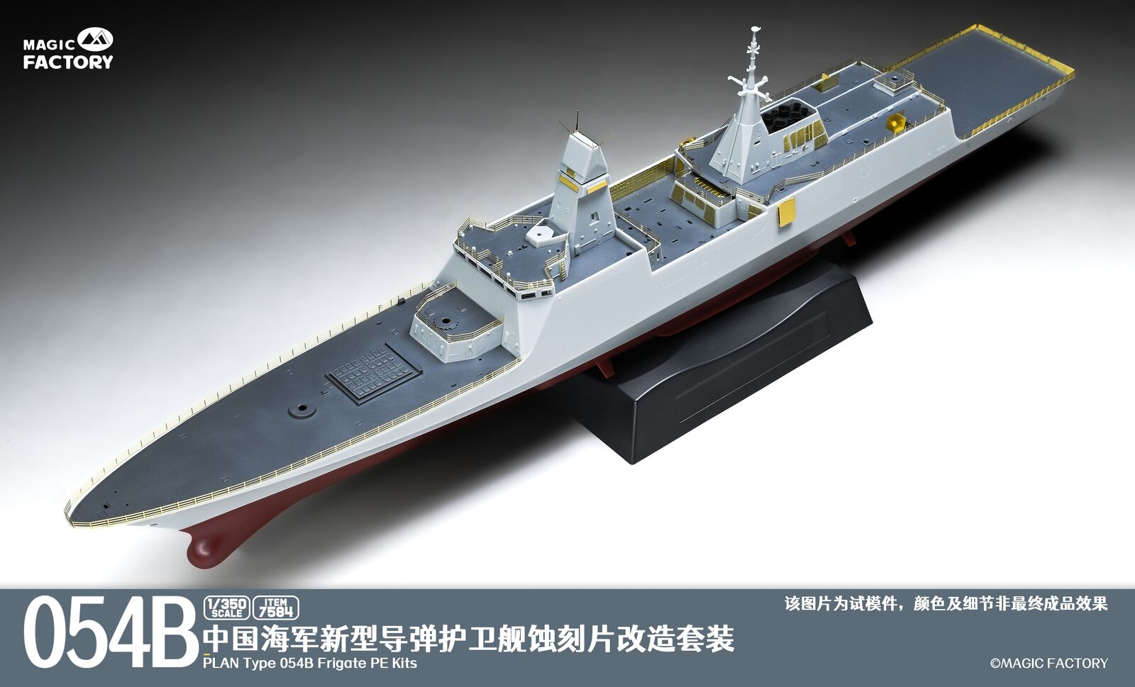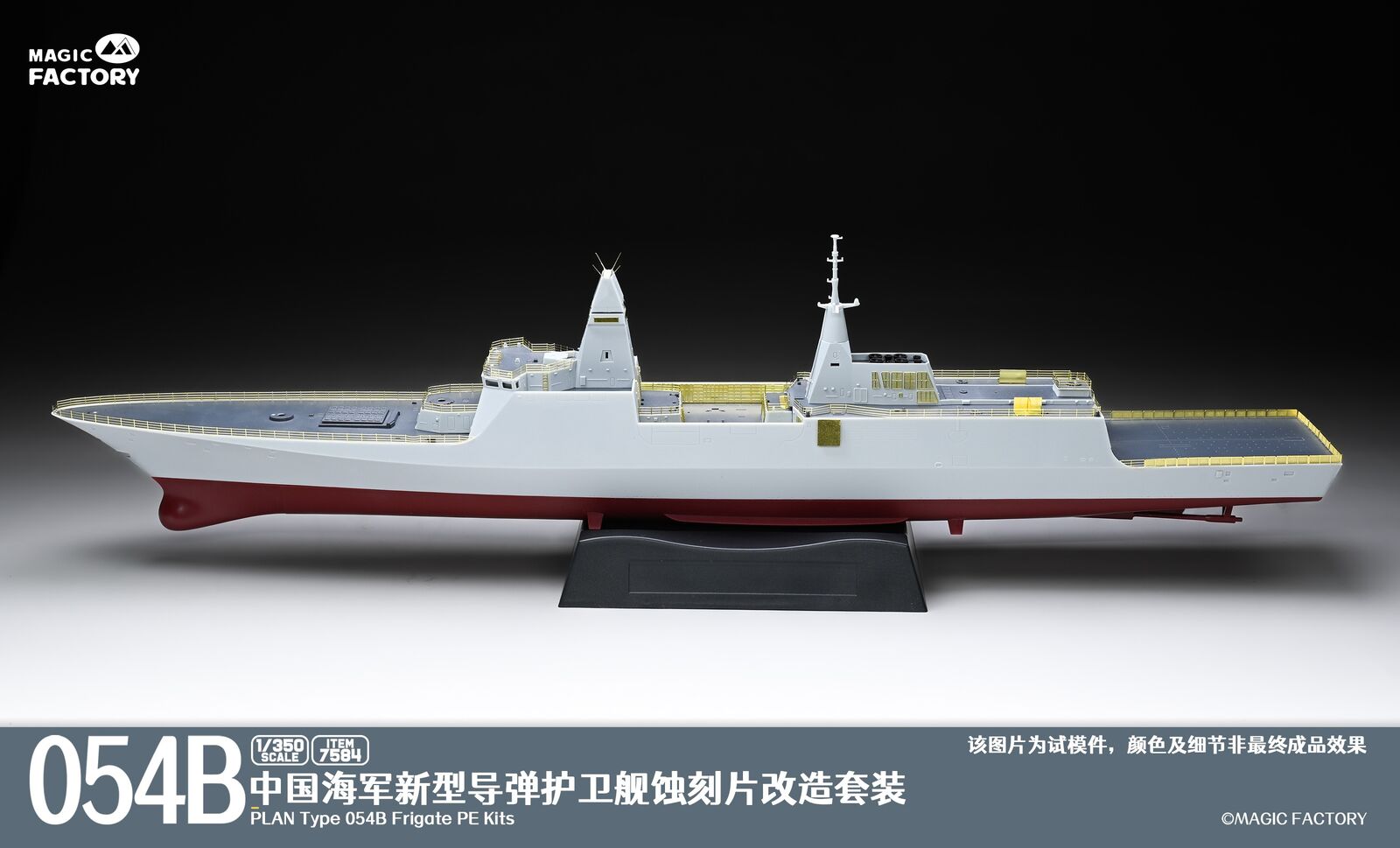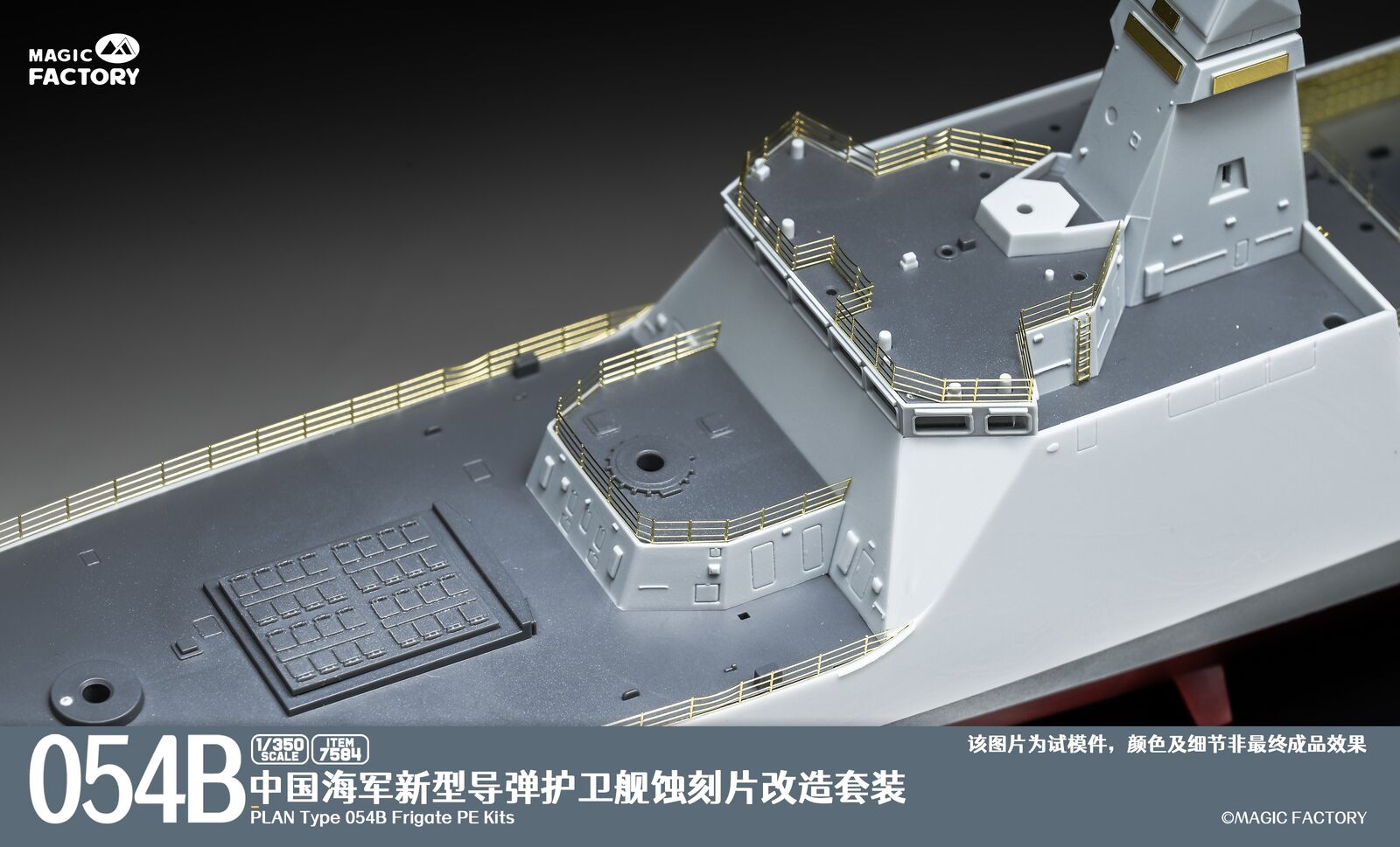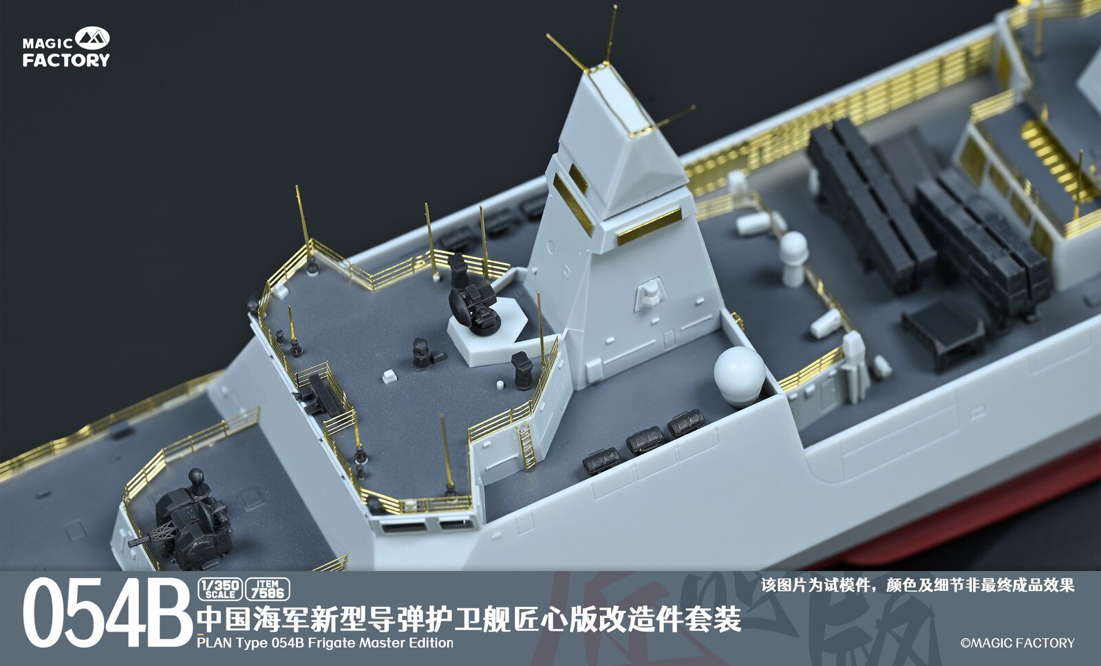 Same as our 1/350 Type 055 Destroyer, our new item also cement-free and pre-colored which is friendly to all kinds of modelers. The core of the design is still excellent assembly experience! Type 054B Frigate is the newest frigate of PLAN and already launched and tested in 2023. It is a development of the Type 054A frigate, and is around 50% larger than its predecessor(Displacement around 6,000 tons). Pennant number 555 name Qinzhou(钦州) and now is still under sea trials.