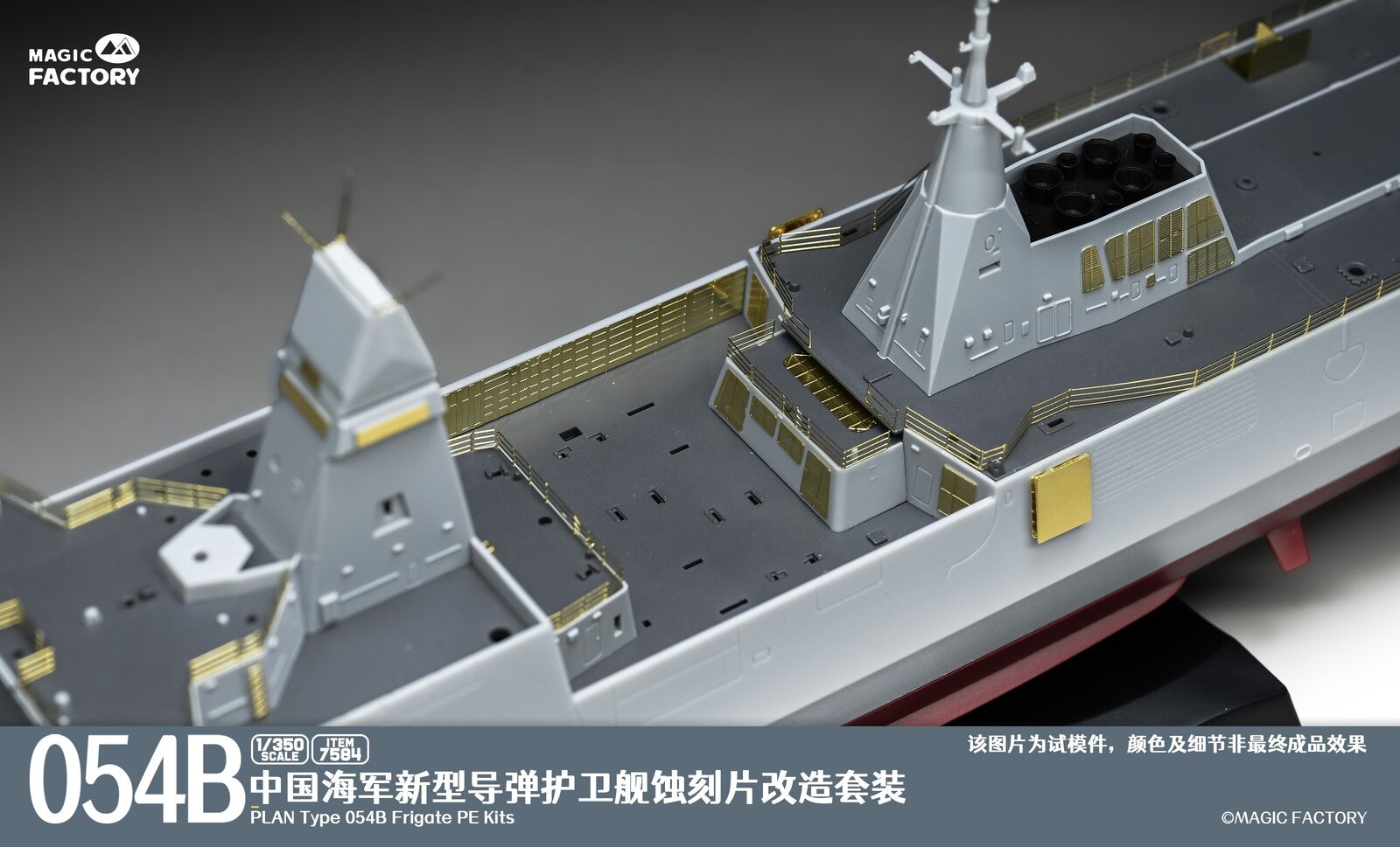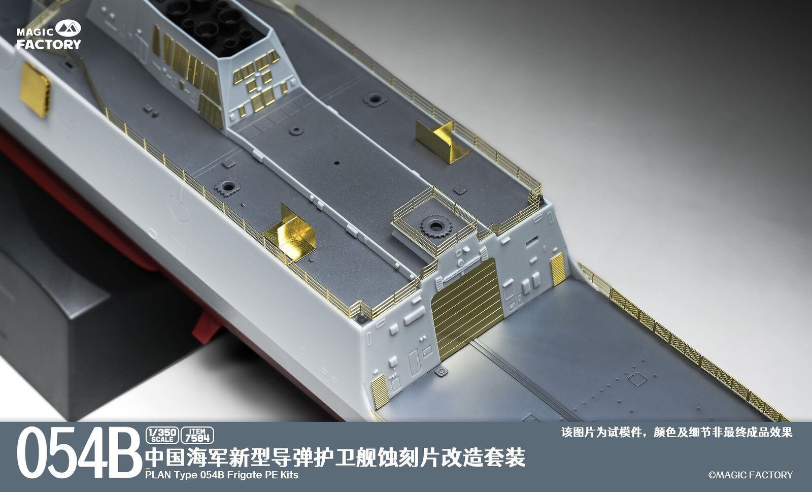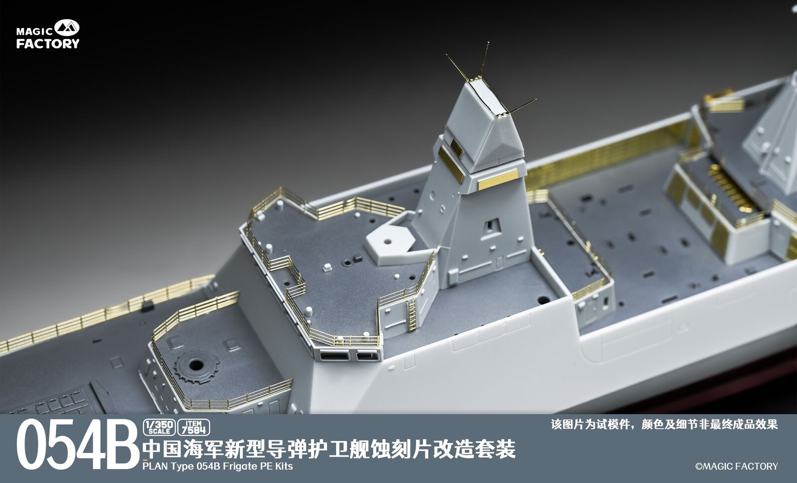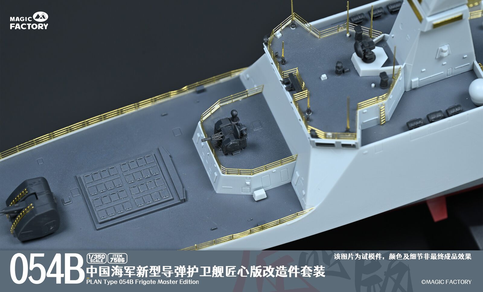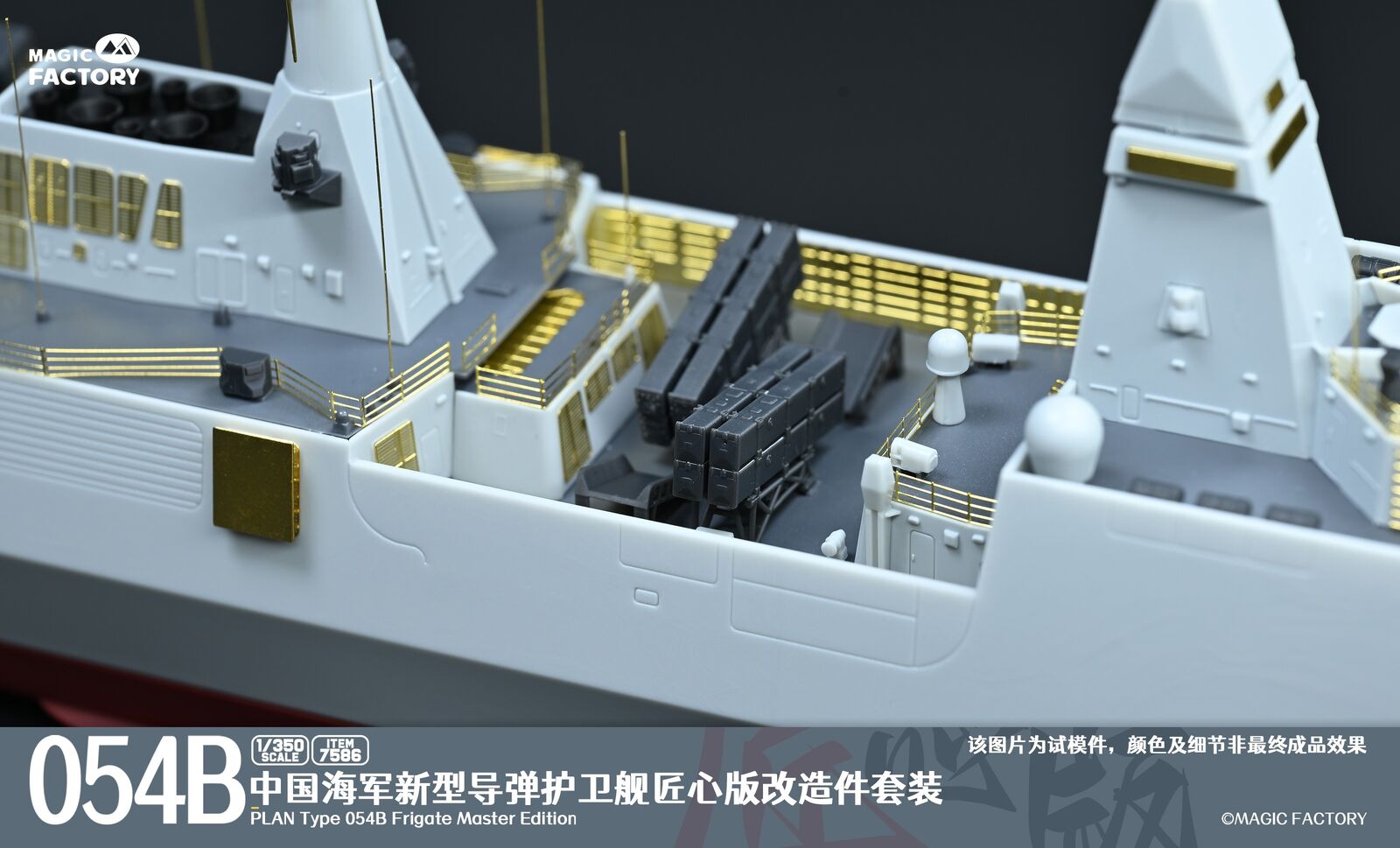 Same as our 1/350 Type 055 Destroyer, our new item also cement-free and pre-colored which is friendly to all kinds of modelers. The core of the design is still excellent assembly experience! Type 054B Frigate is the newest frigate of PLAN and already launched and tested in 2023. It is a development of the Type 054A frigate, and is around 50% larger than its predecessor(Displacement around 6,000 tons). Pennant number 555 name Qinzhou(钦州) and now is still under sea trials.