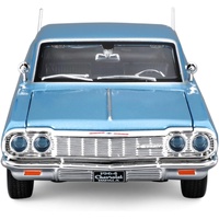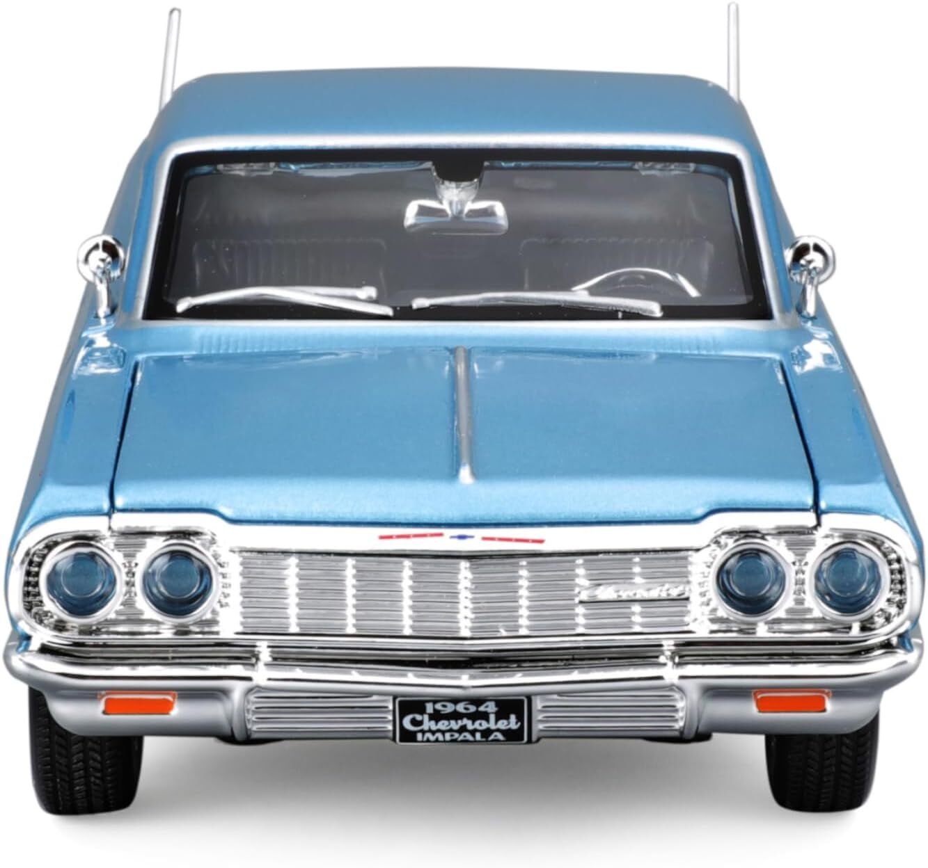 The Maisto Diecast 1964 Chevrolet Impala 2 Door is a carefully crafted model that will add a touch of nostalgia to your collection. The brilliant blue paint and precision metal injection molding of this 1:24 scale replica perfectly reflects the essence of the legendary 1964 Chevrolet Impala.