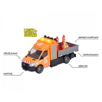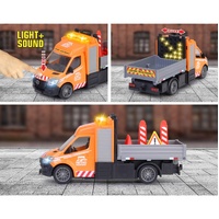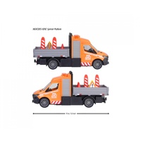 This eye-catching Mercedes-Benz Sprinter (15x5.5x7cm) comes with a range of entertaining light and sound effects, which can be activated via a button on the roof of the vehicle. In addition to headlights and a roof-mounted warning light for working in the dark, you’ll also find a flashing arrow on the back of the vehicle that can be moved left or right. The required batteries (2x AAA) are included with the vehicle. A selection of traffic signs are also included as additional accessories.