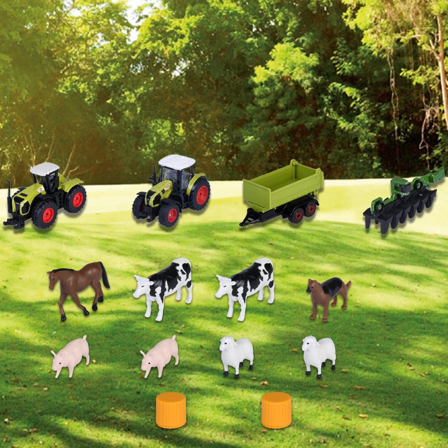 The large farm set (56x36x24 cm) includes 3 powerful vehicles in the officially licensed CLAAS design: a CLAAS Xerion 5000 tractor, a CLAAS Arion 660 tractor and a CLAAS farm trailer. In addition to the toy cars, there are 8 animals on the farm - including cows, pigs, horses and a farm dog. With accessories such as hay bales and an extra play area to cut out, a whole farm landscape can be created in an instant for hours of fun - perfect as a gift for girls and boys.