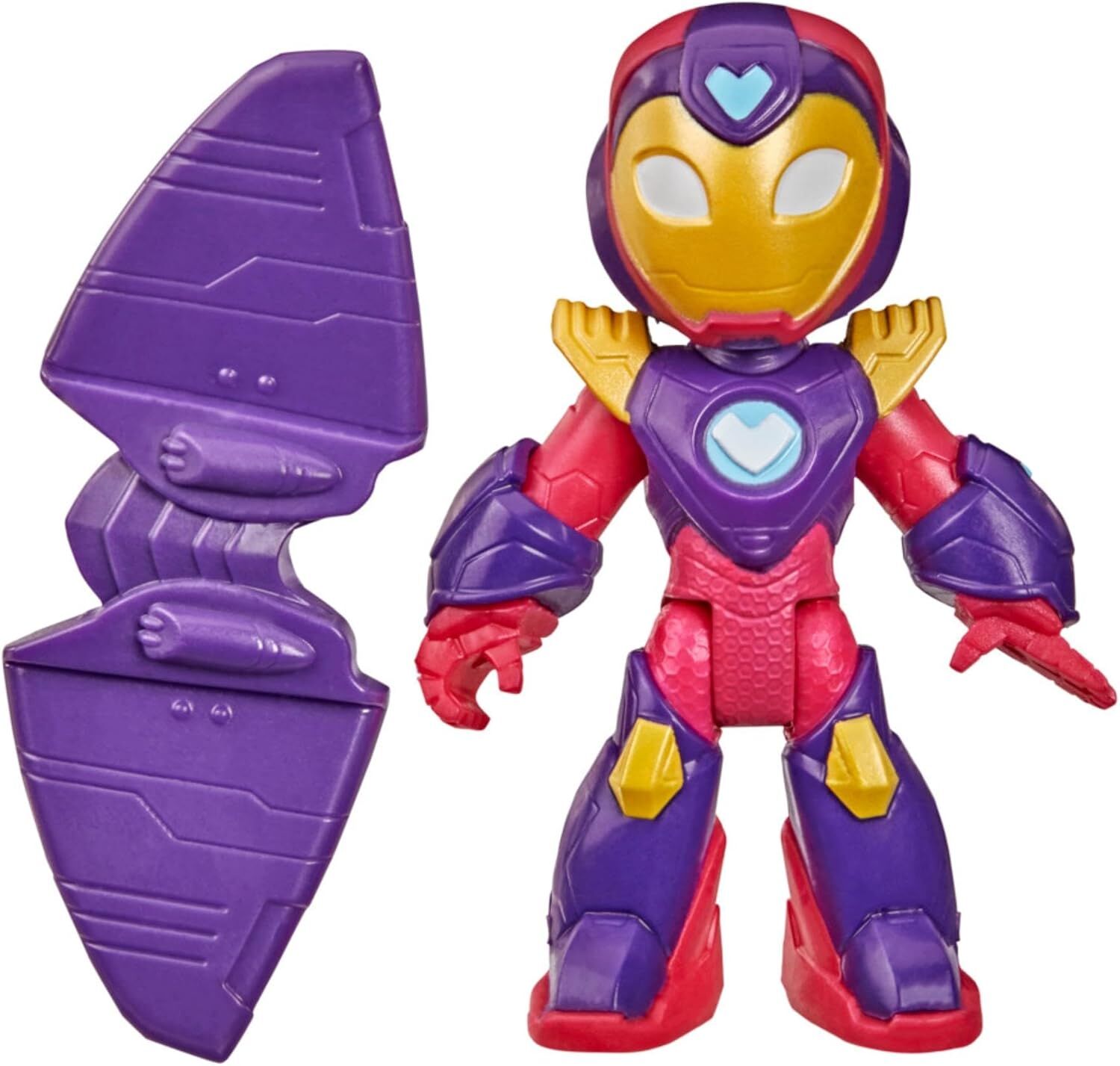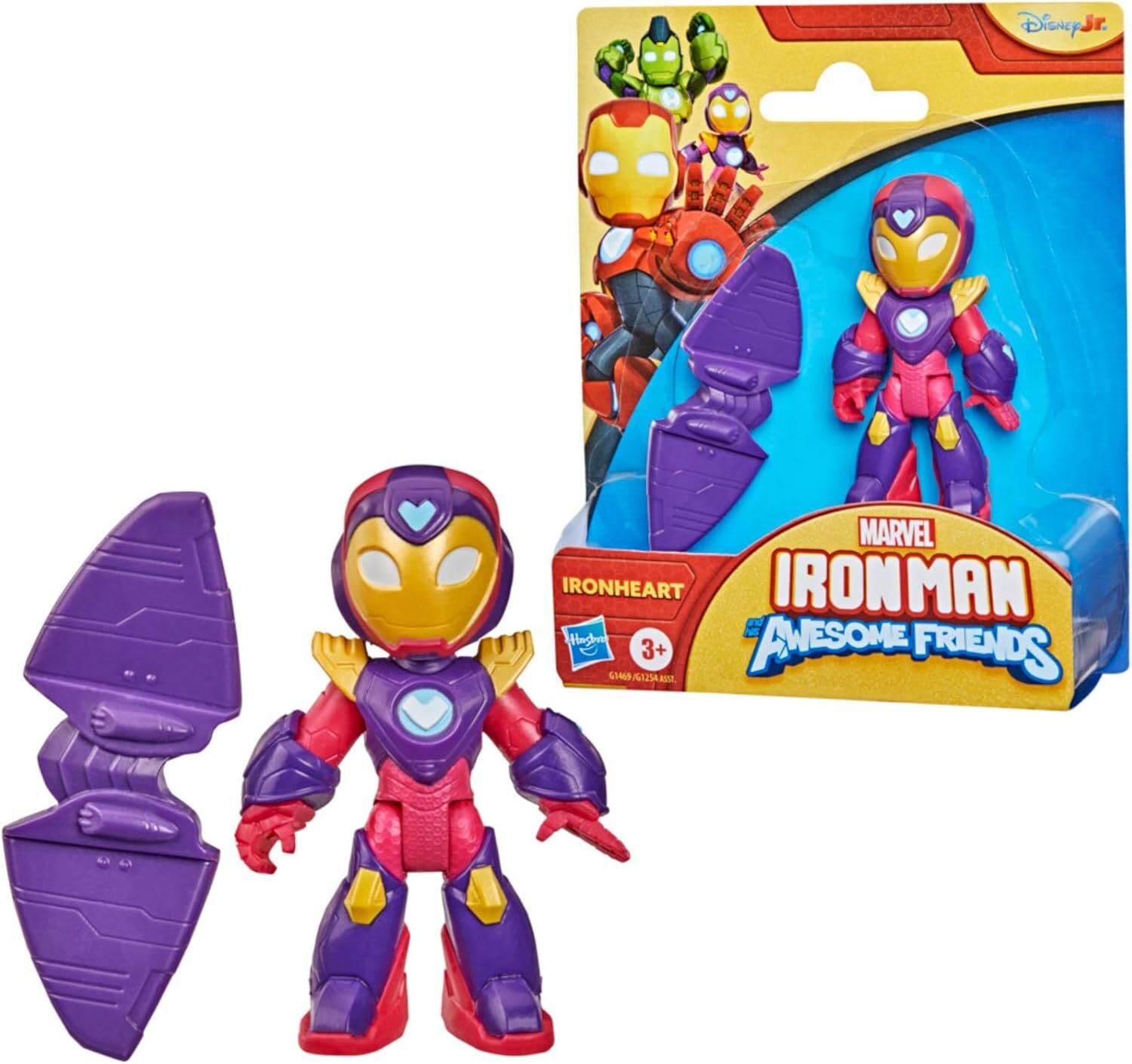 • Figures from the series: this Ironheart figure features a design for the Disney Jr. Iron Man and his fantastic friends series