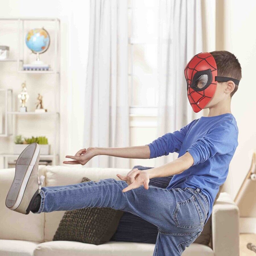 Peter Parker suits up as the amazing Spider-Man, swinging between buildings to take down his enemies! Kids can imagine swinging through the city like the web-slinging hero with this Spider-Man Hero Mask. The eye lenses feature dotted graphic detailing inspired by the appearance of Spider-Man's mask. Plus, the mask features a flexible band that fits most kids, so they can imagine joining the wall-crawling adventure. Superpowers not included