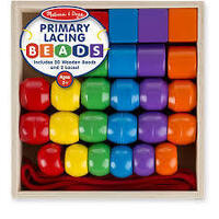 Thirty wooden beads in six vibrant colours and five distinct shapes combine with two extra-long laces for many activities. Stringing the easily grasped beads promotes hand-eye coordination, fine motor, cognitive and visual perception skills.