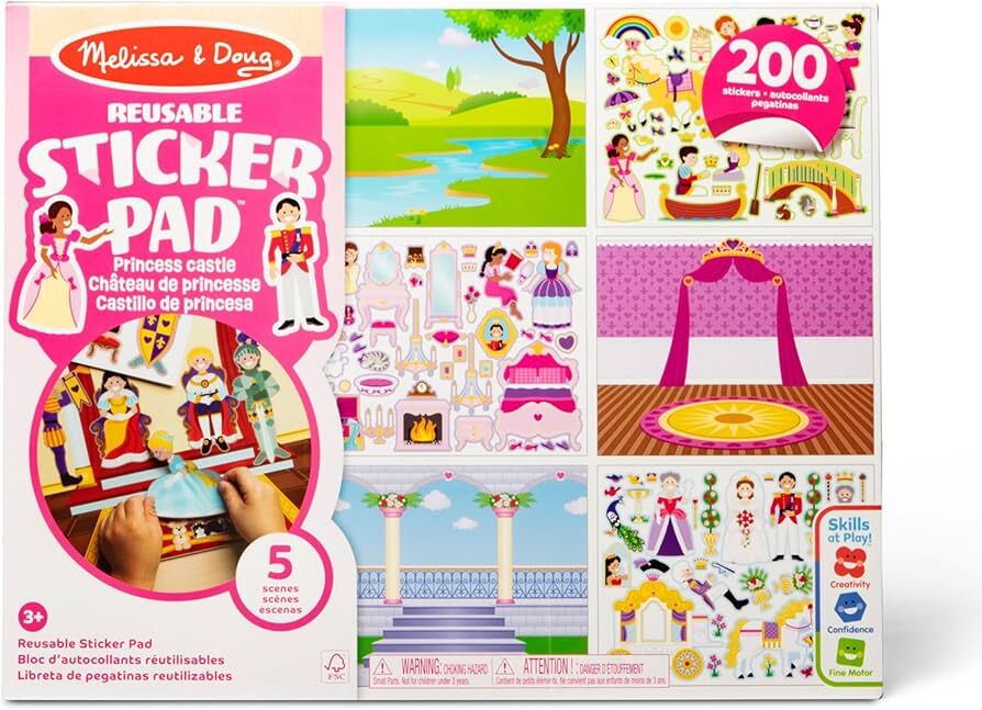 Create your own royal adventures with the Melissa & Doug Reusable Sticker Pad – Princess Castle! This enchanting activity set includes five glossy, full-colour scenes in and around a magical castle, ready to be decorated with over 165 reusable stickers. From elegant gowns and glittering crowns to carriages and courtly characters, kids can design endless fairytale scenes again and again.