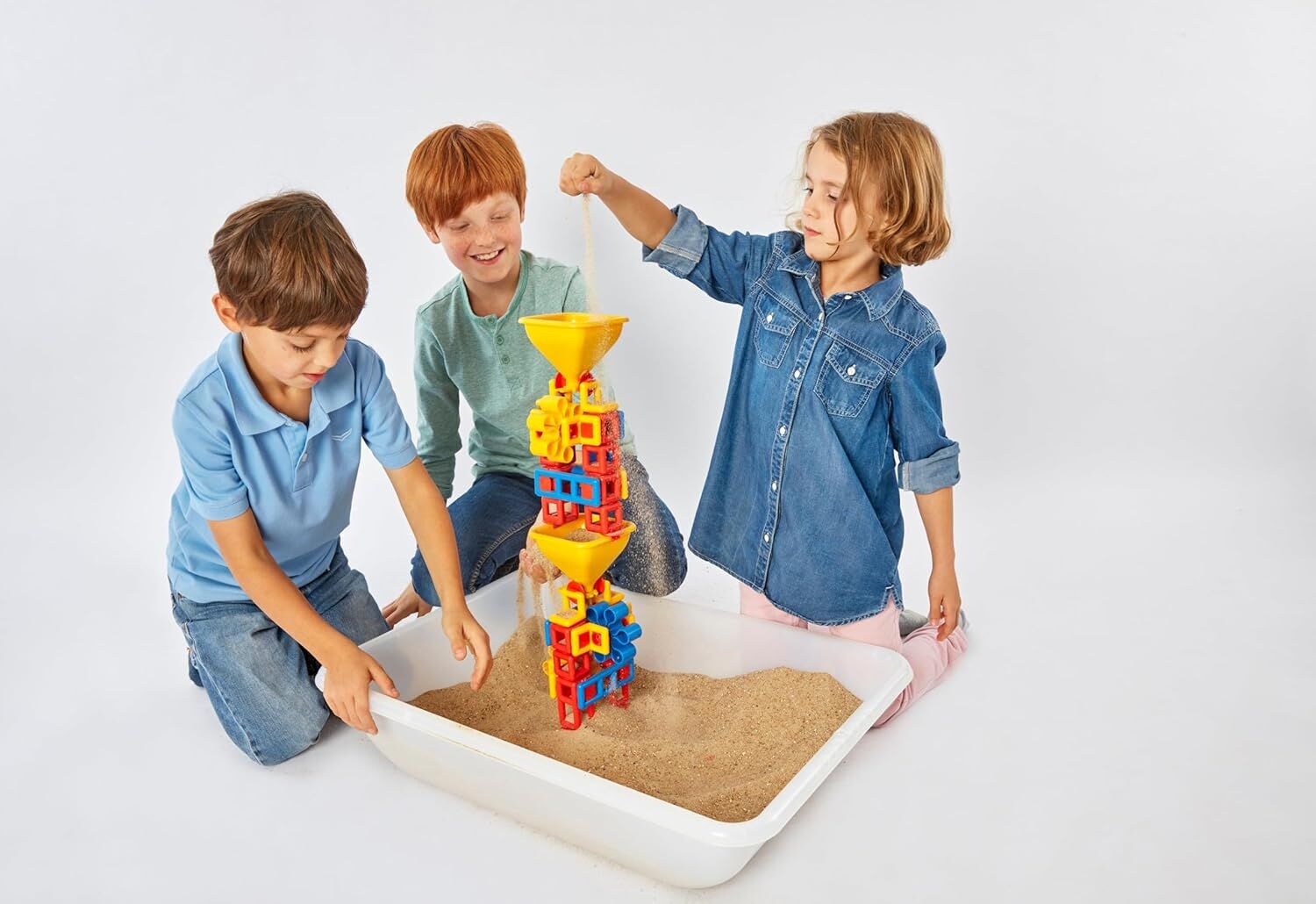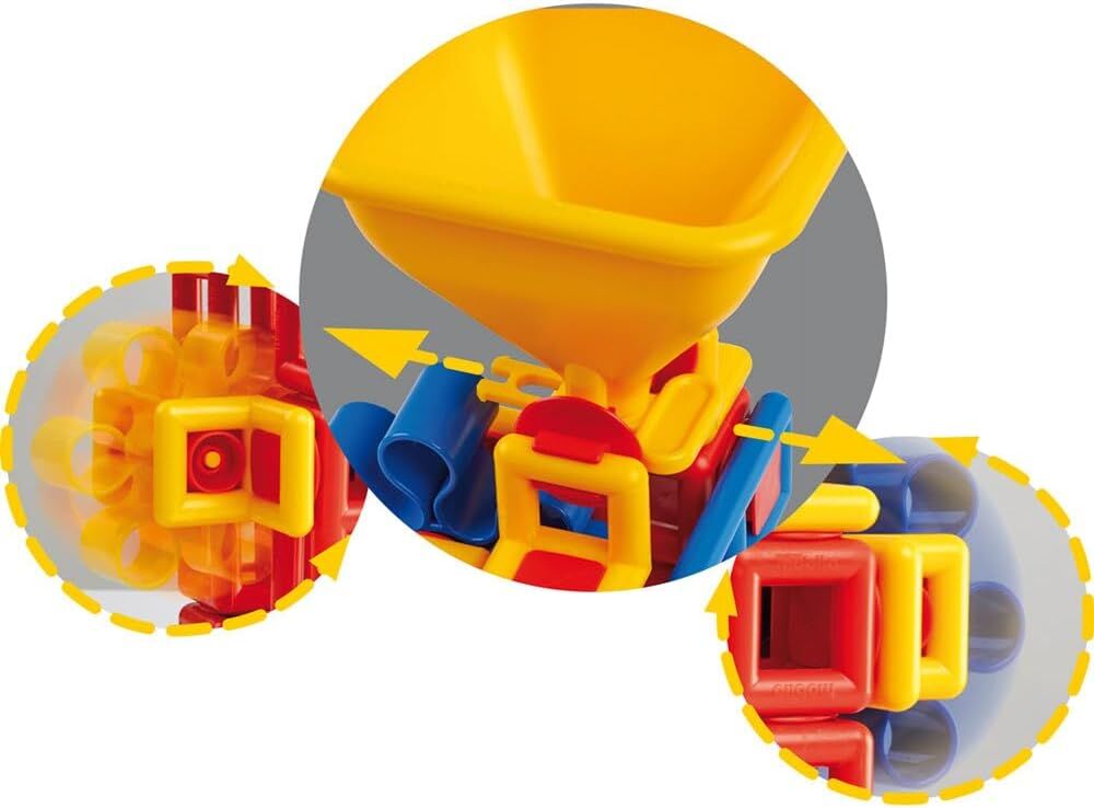 Now children can take Mobilo outside for use with sand! The Mobilo Flow STEM construction set features a funnel and spinning wheels. Experience a new world of STEM possibilities with this wonderful set. Children in the early years will be able to broaden their STEM activities with this wonderful set. It combines original and new Mobilo pieces. This innovative addition to Mobilo's high-quality range supports children's natural desire to experiment. It helps to develop their concentration and provides a fun and exciting way to discover the principles of the physical world for themselves.