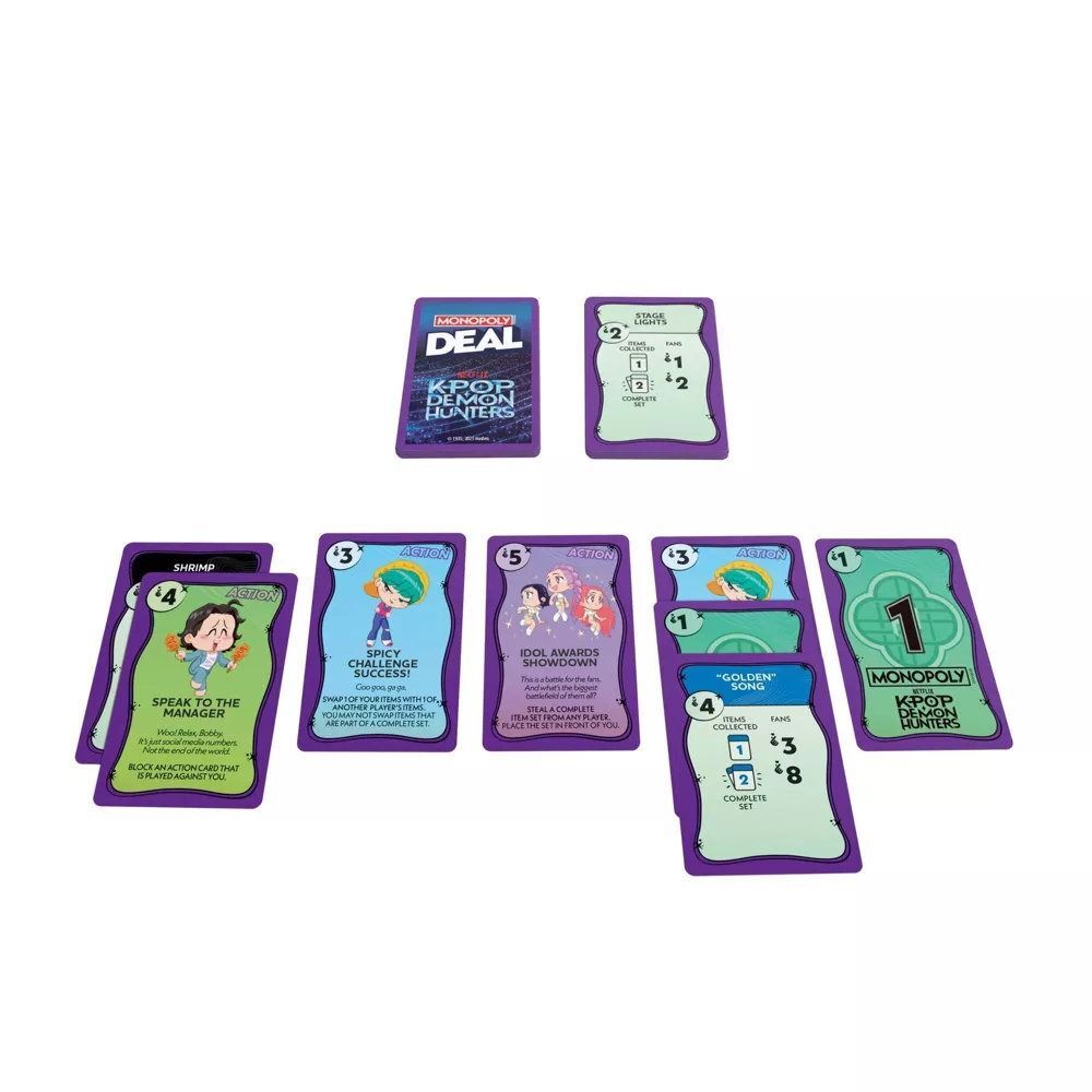 • INSPIRED BY KPOP DEMON HUNTERS: Help HUNTR/X prepare for their most epic concert yet in the Monopoly Deal: KPop Demon Hunters game! Features characters and themes from the hit Netflix animated film