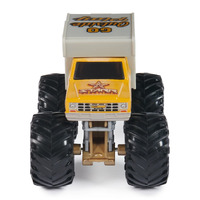 Introducing the all-new, official 1:64 scale die-cast Monster Jam monster truck! This lean, mean, Monster Jam machine features awesome graphics and details. With official BKT Tires, stylized rims, and an authentic chassis, this monster truck embodies the style and swagger of its real-life counterpart! Each 1:64 scale toy truck comes complete with a driver molded into the driver's seat and a barrel, ramp, or crushed car accessory play piece (accessory may vary)! Use the accessory to create your own stunts and jumps, just like you've seen in the live shows! This 1:64 scale die-cast Monster Jam truck is just like the real thing - only fun size! And now, with even more trucks to collect (toys each sold separately), you can use the accessories to build different stunt configurations and unleash the epic Monster Jam action again and again! Plus, easily keep track of your collection with the exclusive collector poster. Monster Jam monster truck toys are the perfect gifts for kids ages 3 and up. Bring home your favorite Monster Jam monster trucks and start building your collection today!