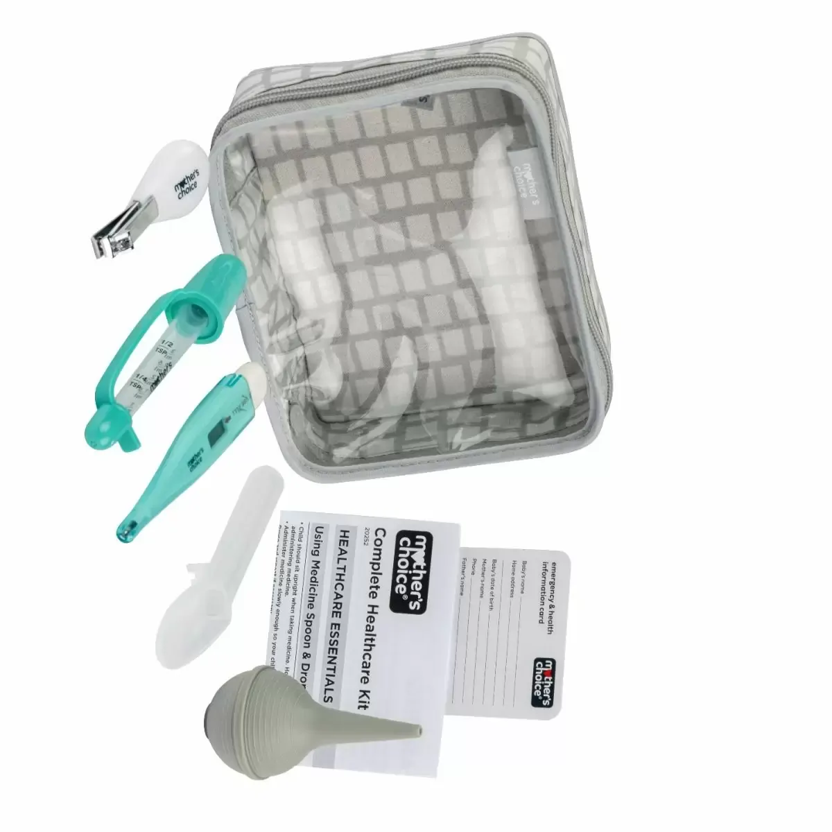 The Mother’s Choice Complete Healthcare Kit gives you a convenient easy way to keep all of baby’s healthcare items organised, both at home and on the go. This assortment of healthcare essentials includes a much needed 3 in 1 thermometer, nasal aspirator to clear mucus, medicine dropper and spoon. The clear view case enables you to store and see everything you need for baby’s healthcare.