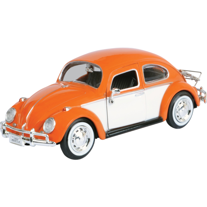 Motormax - Orange 1966 Volkswagen Classic Beetle with Rear Luggage Rack Volkswagen Collection 1/24th Scale Die-Cast Vehicle Replica
