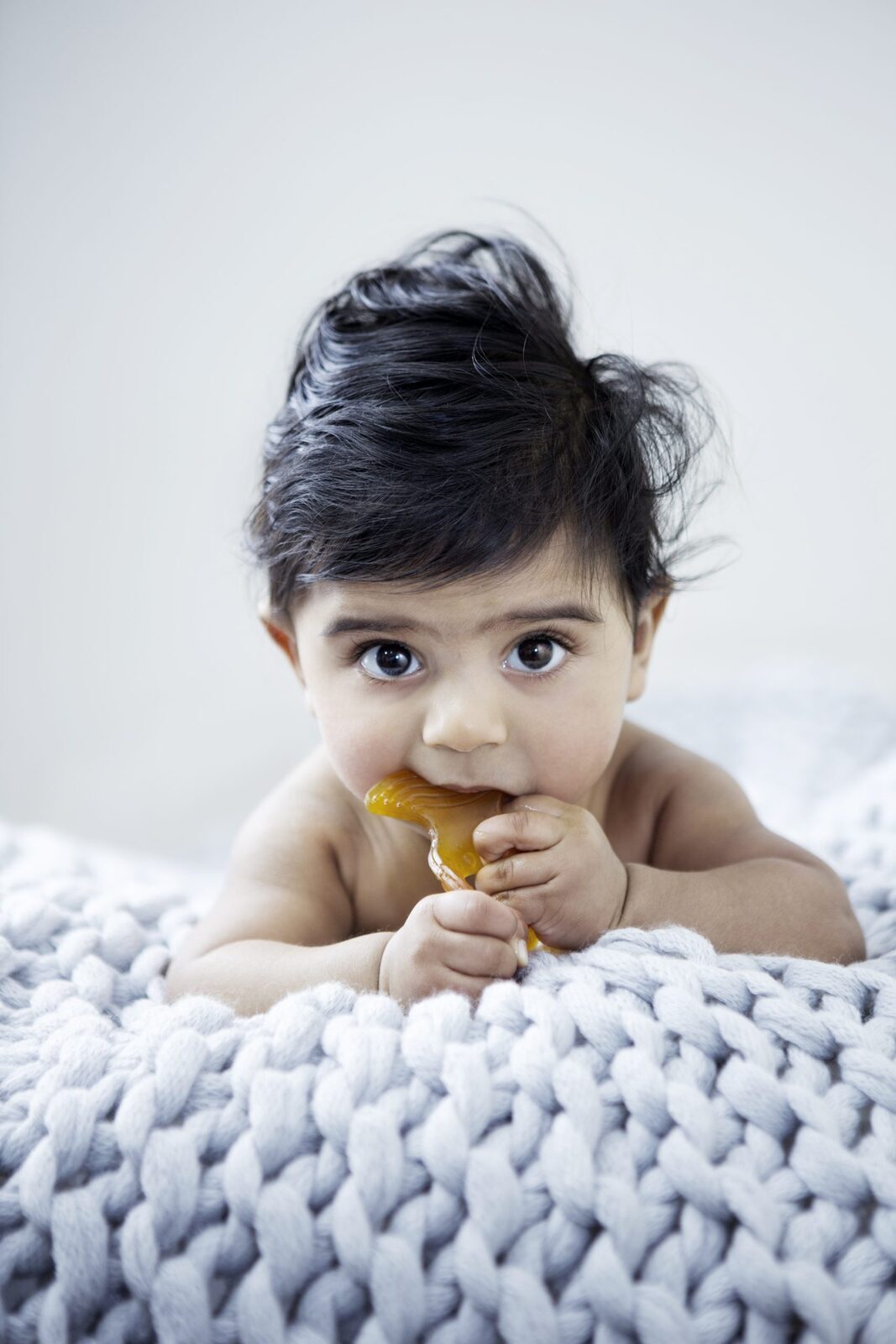 One (1) Natural Rubber Teether in one (1) reusable case allowing for convenient and hygienic storage.